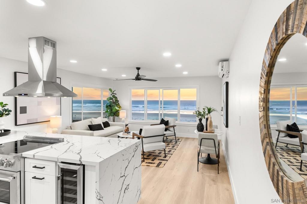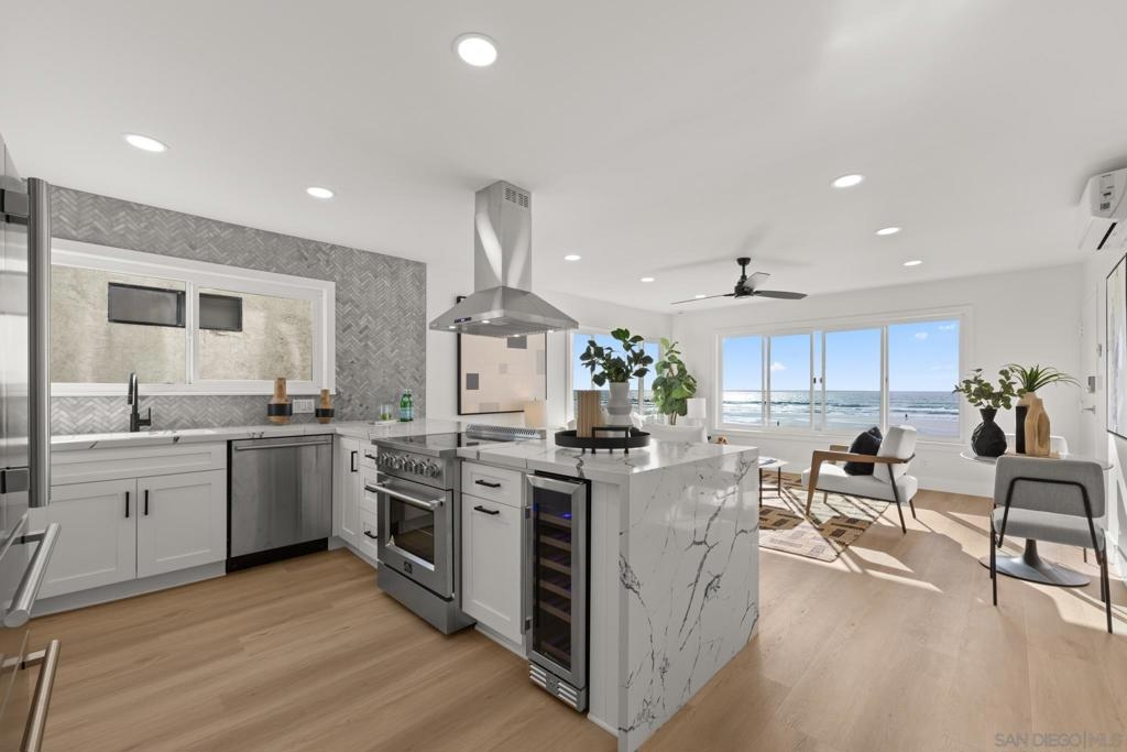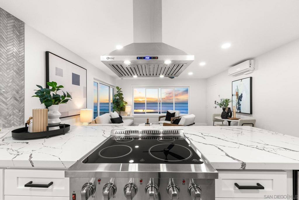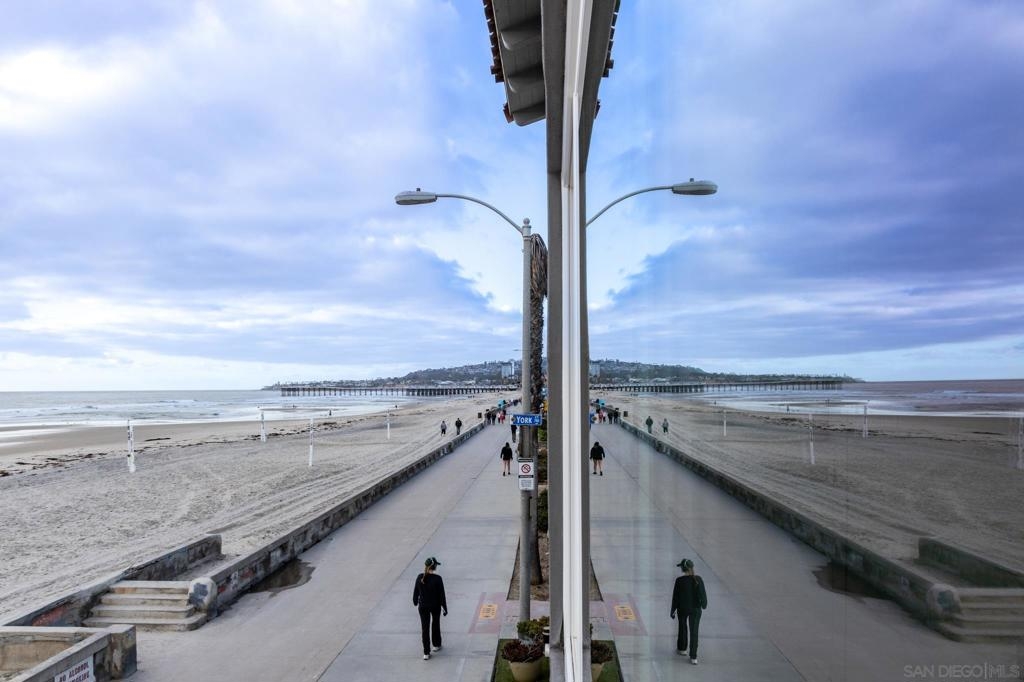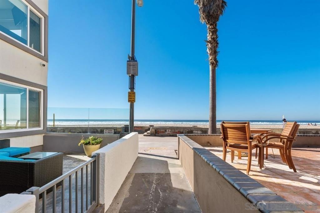 Dream views, phenomenal location and newly remodeled- look no further! This ocean front 2 bed room 2 bath unit went through a full renovation with new AIR CONDITIONING added! Sit down and enjoy the sun shining over the water from your living room or kitchen. The kitchen features new wood cabinets, quartz countertops with marble backsplash, and brand new, high-end appliances. The first bathroom features a tub/shower combo with herringbone style tile from tub to ceiling, new vanity and marble flooring. The second bathroom features a stand alone shower and new vanity with marble flooring. New shaker doors and LVP were added throughout the property. Enjoy sunsets on the common area patio furnished with outdoor tables, couches, chairs and BBQ! Elevator servicing all floors of the building. The whole building has gone through extensive renovations over the last couple of years with new stucco and windows, patio upgrades, furniture, new LVP throughout the common area space with new security and automatic lighting installed. This property would make a great full time residence, second home or investment opportunity. Just steps away from the best San Diego has to offer! Restaurants and bars just a couple blocks away, volleyball down the entire beach, water-sports in the bay, Belmont Park just a 5 minute walk away. True California living! HOA includes cable, water, sewer, trash pickup, gas, roof and exterior building maintenance. Unit comes with 1 parking spot.