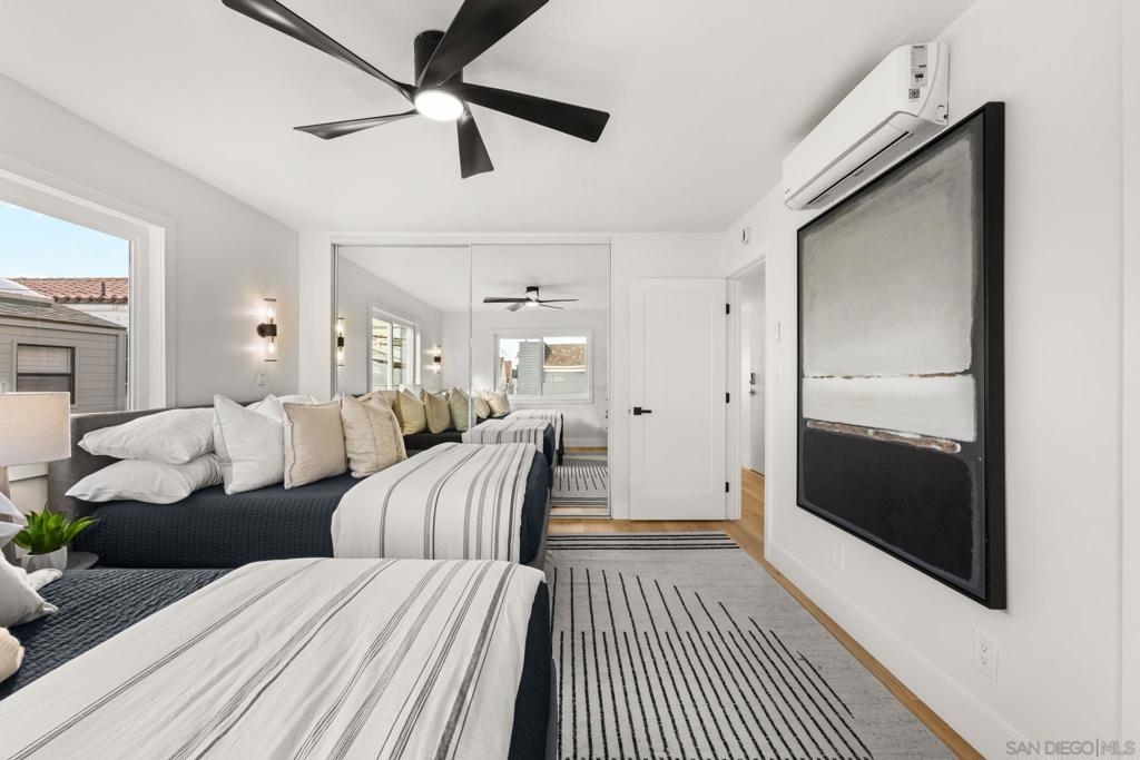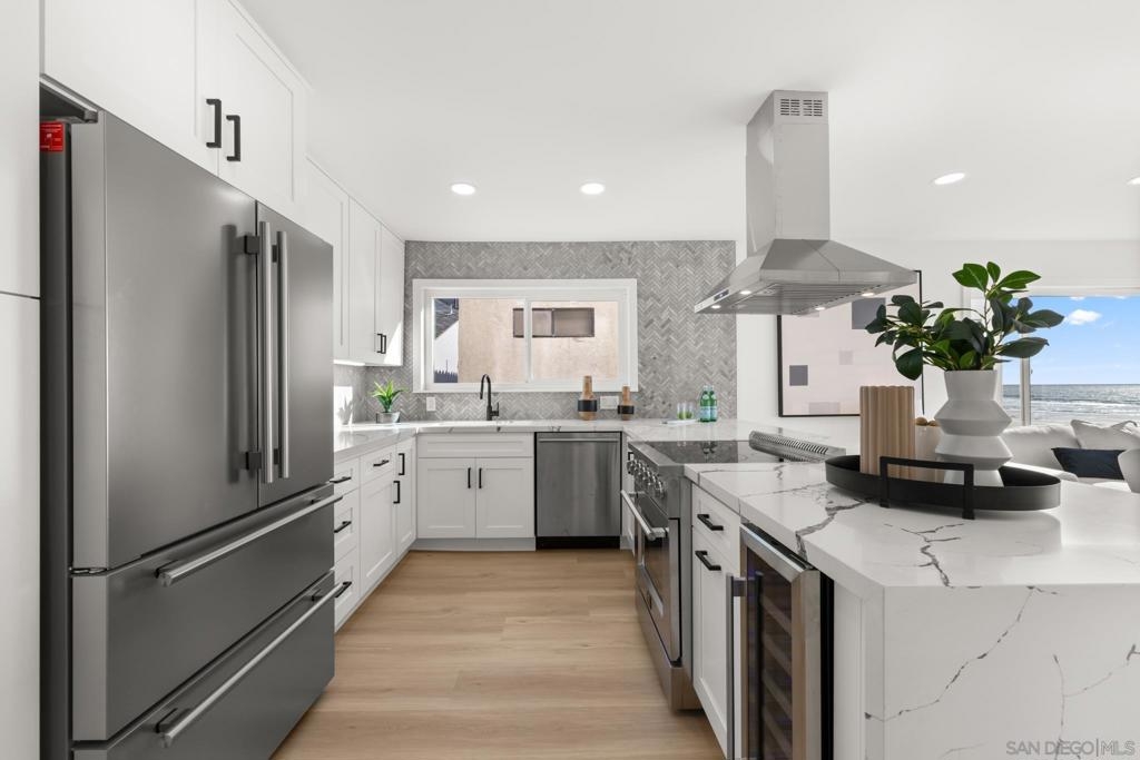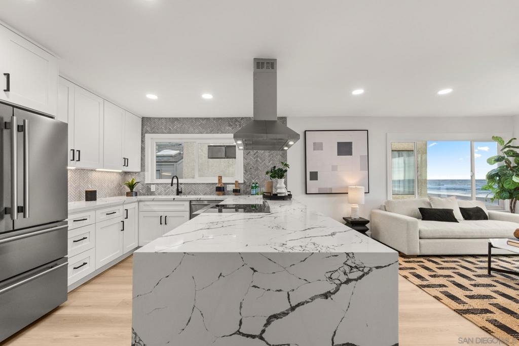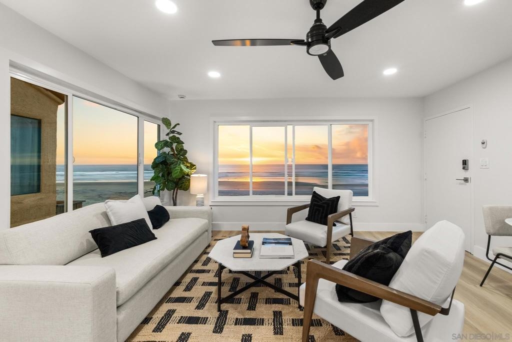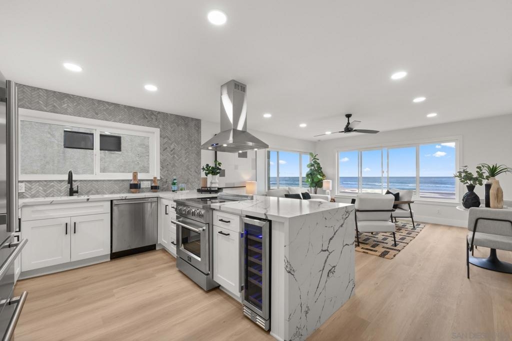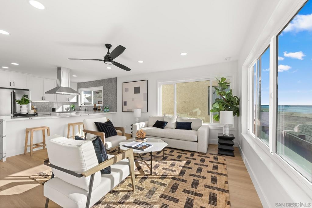 Dream views, phenomenal location and newly remodeled- look no further! This ocean front 2 bed room 2 bath unit went through a full renovation with new AIR CONDITIONING added! Sit down and enjoy the sun shining over the water from your living room or kitchen. The kitchen features new wood cabinets, quartz countertops with marble backsplash, and brand new, high-end appliances. The first bathroom features a tub/shower combo with herringbone style tile from tub to ceiling, new vanity and marble flooring. The second bathroom features a stand alone shower and new vanity with marble flooring. New shaker doors and LVP were added throughout the property. Enjoy sunsets on the common area patio furnished with outdoor tables, couches, chairs and BBQ! Elevator servicing all floors of the building. The whole building has gone through extensive renovations over the last couple of years with new stucco and windows, patio upgrades, furniture, new LVP throughout the common area space with new security and automatic lighting installed. This property would make a great full time residence, second home or investment opportunity. Just steps away from the best San Diego has to offer! Restaurants and bars just a couple blocks away, volleyball down the entire beach, water-sports in the bay, Belmont Park just a 5 minute walk away. True California living! HOA includes cable, water, sewer, trash pickup, gas, roof and exterior building maintenance. Unit comes with 1 parking spot.