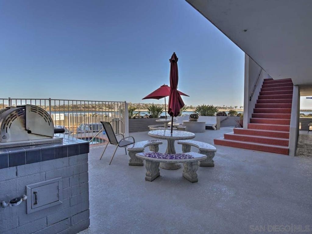 What an amazing opportunity to purchase this fully furnished Turnkey vacation rental with consistent bookings or make it your very own beach getaway. This updated 1 bed, 1 bath condo, with the largest layout in the complex, boasts granite counters, stainless steel appliances, tankless water heater and glass enclosed shower is located at the southern tip of Mission Beach, with stunning panoramic views of the Jetty, Bay and ocean. The property is meticulously maintained, with gated courtyard, spa and two BBQs. Great place to work from home! Easy access to the beach for tons of activity or the bay for quieter enjoyment. You can surf or cycle, walk, or roller blade for miles. Complex Features: ,,, Equipment: Range/Oven Sewer: Sewer Connected, Public Sewer Topography: LL Frontage: Bay