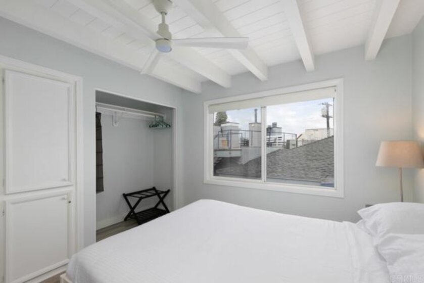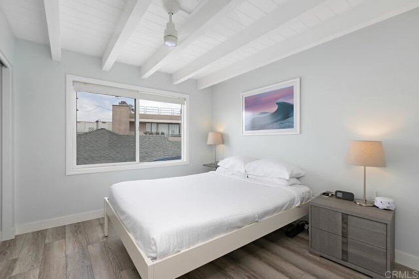 Paradise found! Stunning top level condo with unobstructable Mission Bay channel and ocean views. Completely remodeled featuring spectacular kitchen with quartz counters and stainless steel appliances, dual paned windows, luxurious bathroom, new flooring and in-unit laundry! This condo is currently a lucrative vacation rental with consistent bookings. Common area BBQ and spa as well as your own 1-car garage!