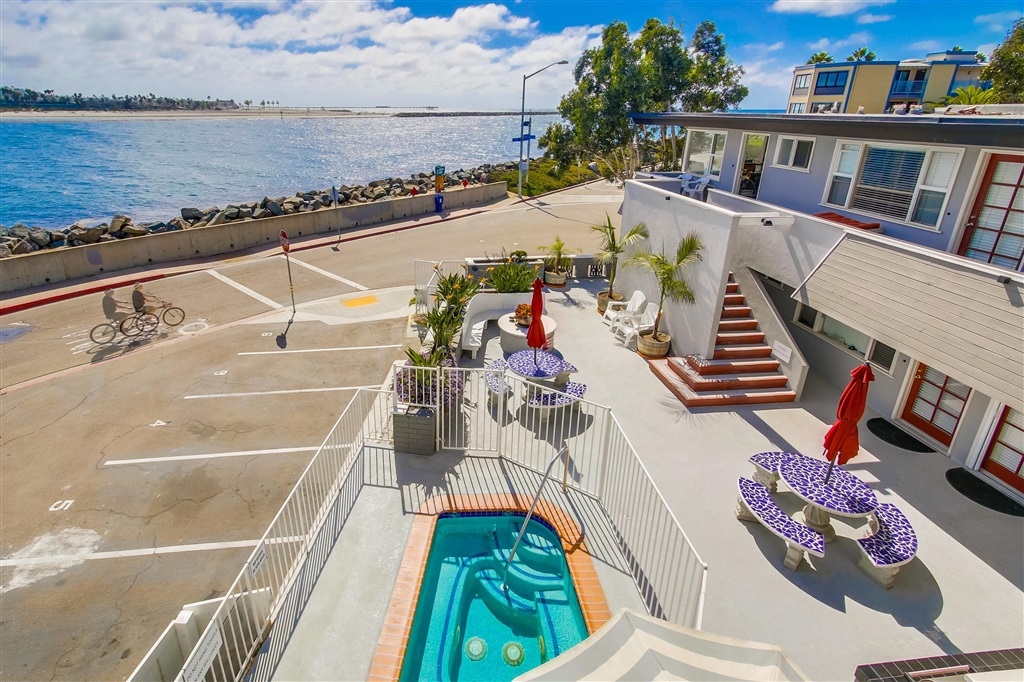 You'll love the sweeping ocean and channel views from this west-facing coastal condo. Located on the top floor, you'll experience natural sunlight and an ocean breeze! The kitchen offers a breakfast bar for dining and opens directly to the spacious living room. Easily park in a private 1 car garage and walk directly into the secured building that offers many amenities. Enjoy the quiet south end of Mission Beach, located steps away from both the ocean and the bay. Offered Fully Furnished-Vacation Rental. Mission Point View offers great additional amenities. The ground floor patio area offers plenty of room to entertain guests, just off the beach! The common area patio includes multiple dining tables and other seating, two barbecue grills, and even a jacuzzi! A sauna, bicycle storage, and laundry facilities are also available within the community. This is a little piece of paradise just steps away from the beaches of both the ocean and the bay.. Neighborhoods: Mission Beach Complex Features: ,,,,, Other Fees: 0 Sewer: Sewer Connected Topography: LL