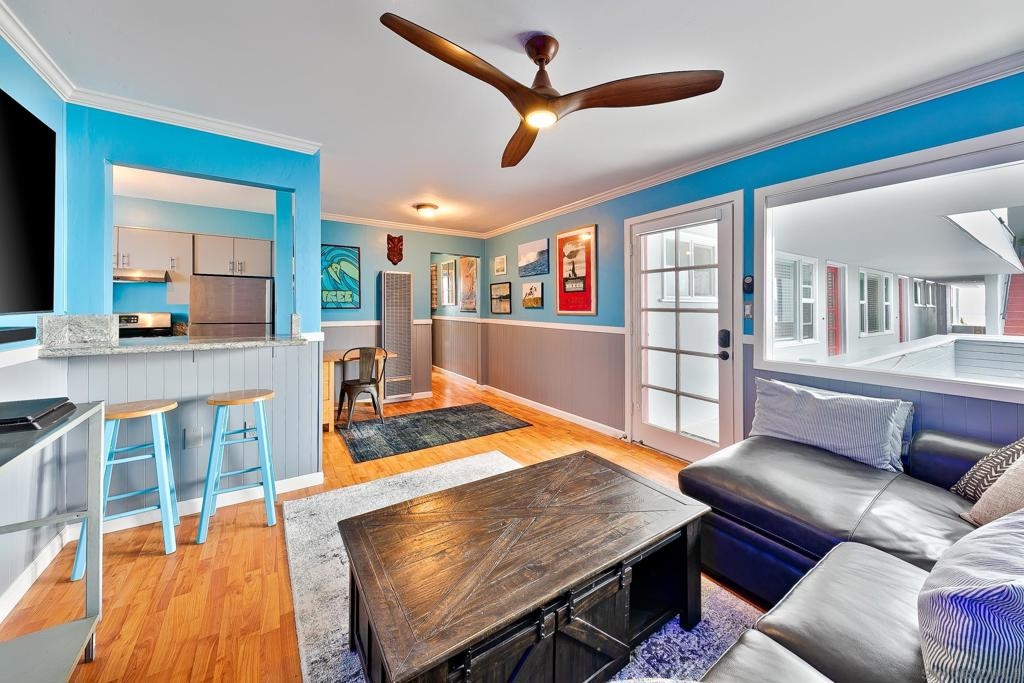 Price reduced! Recently remodeled end unit. Owner occupancy is 50%, verified by county tax rolls. Everything in the unit included in purchase except for owner’s personal artwork. This turnkey Mission Beach getaway features the largest layout in the complex with granite countertops, stainless steel appliances, tankless water heater, entertainment system, and modern styled bathroom. Stunning views of Mission Bay channel & Ocean Beach from living room, and bay views from bedroom. The courtyard is recently refinished, with gated jacuzzi, gas BBQ, fire pit and picnic benches. Currently used as a successful Airbnb investment property. Tier 4 License renews in May. Existing bookings can transfer for immediate income or be moved to other units without hassle to be move in ready for the new owners. Financials available on request.