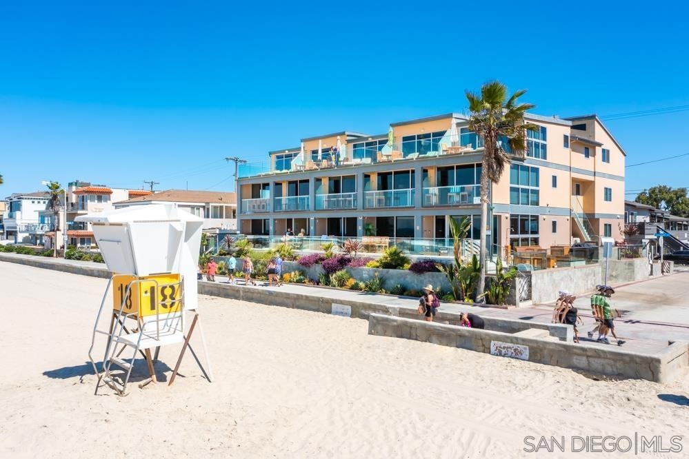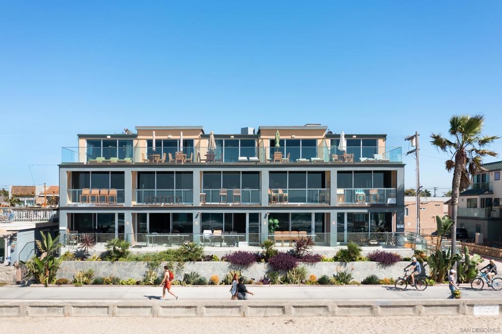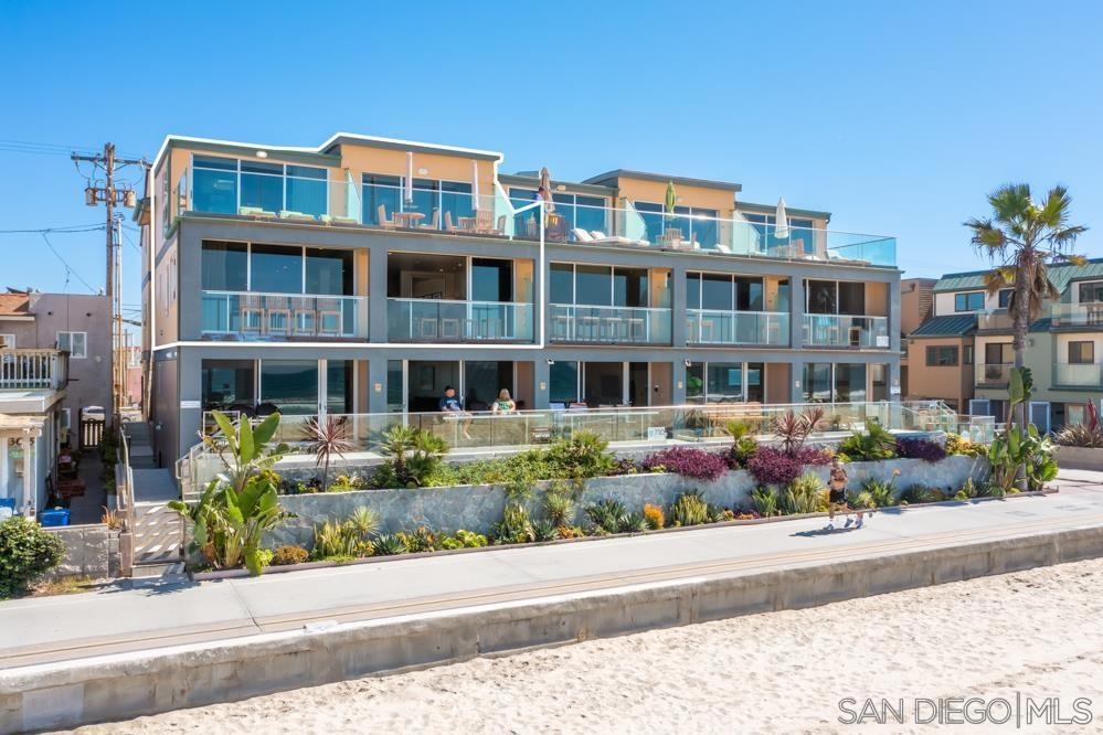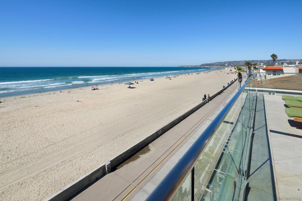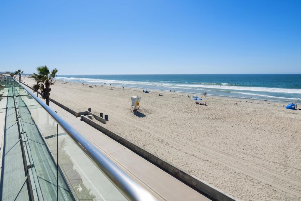 Rare opportunity to own a Premier Penthouse Dream combining Panoramic Views of white water crashing surf + luxury top-floor ocean front living from this furnished “move in ready” 4BR+Den/ 5.5BA spacious Mission Beach condo. Cast your panoramic gaze all the way north toward La Jolla or South to Ocean Beach, while listening to crashing waves perched a top the sands of world famous Mission Beach. This expansive 2 Level floor plan encompasses a combined two penthouse units on 2nd/3rd floor boasting modern marble/stone flooring, Coastal Great Room w/ ocean views, chic stainless appliances & floor-to-ceiling Western Multi-Slide glass doors spilling out onto your abundance of private ocean front Decks. Dream LIFE! Don't miss this opportunity to enjoy ownership in Modern Coastal Bliss w/ Year Round White Water VIEWS in one of the best locations on Mission Beach overlooking pristine coastline & a close boardwalk stroll to shops, nightlife & aquatic entertainment. ENTRY LEVEL: High Ceilings & spacious floor plan from your white water living, kitchen & dining room await you w/ a pristine stone countered kitchen w/ Dual SubZero Fridges, Bosch/Viking aplcs, Center Island 5 Burner cooktop & wrap around built-in dining nook ALL overlooking crashing surf, white sands & sunsets. UPSTAIRS: Dual Ocean Front Main BR Suites w/ spa like bathrooms & exclusive penthouse ocean view decks line the westerly exposure Plus 3 additional guest rooms for large vacations, gatherings or rentals. OTHER: 1) Air Conditioning Mini-Splits in rooms 2) Custom sleek Bathrooms w/ stone flooring/vanities, Kohler sinks, TOTO toilets, Tankless Water Heaters 3) Custom wainscoting lined Entry 4)AV Speakers/Alarm System 5) 5th Room Optional BR has 4 Bunk Beds for Guests (no closet/no window) 6) 2 side-x-side Parking Spaces, Numerous skylights, Walk-in closets, Woven Pendant Lighting, Frosted Glass & Stainless Accents......a true legacy coastal property along the San Diego coast! Equipment: Dryer, Range/Oven, Washer Sewer: Sewer Connected Topography: LL Frontage: Ocean/Sand, Open Space