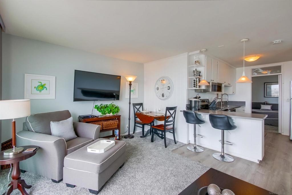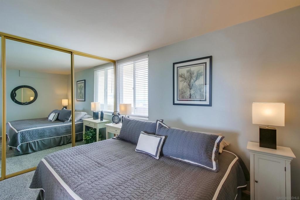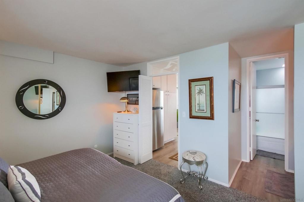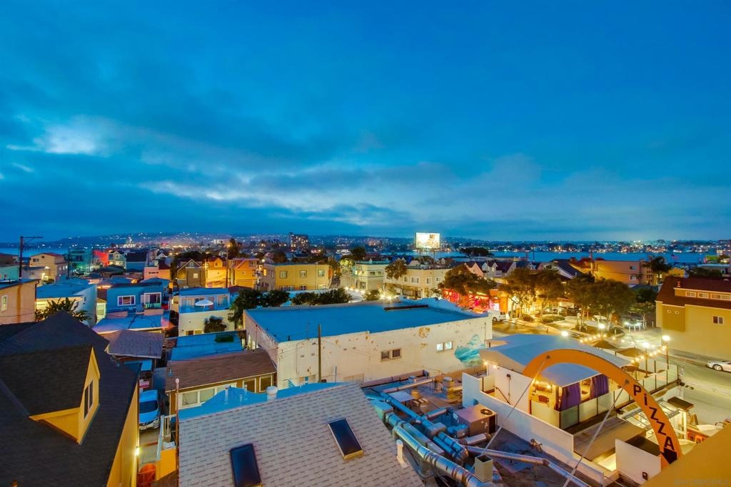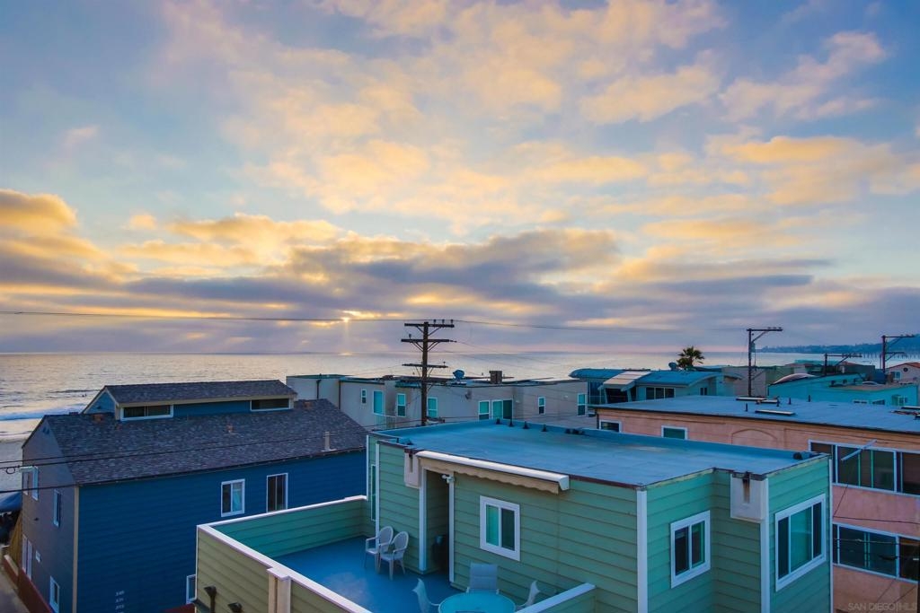 Welcome to your coastal retreat in the heart of Mission Beach, just steps from the sand! TOP FLOOR units in this building, tallest in the area, are RARELY available. This stunning condo has been meticulously updated to provide the ultimate beachfront living. From the moment you step inside you'll be captivated by the light-filled, open-concept design that seamlessly blends indoor & outdoor living. Expansive windows & spacious balcony showcase breathtaking 360° views, offering a front row seat to both sunrises over the Bay & vibrant sunsets over the ocean. A modern kitchen featuress sleek quartz counters, S/S appliances & breakfast bar to gather around. Step out onto the large alcony that feels like an extension of your living space. Here you can BBQ, dine, entertain guests while enjoying the view and gentle ocean breezes, a perfect spot to savor the coastal lifestyle. The bedroom offers view of Mission Bay, the pier and the coast to the north. The large closet features plenty of built-in organization. Bath has separate vanity area updated with quartz counter & vessel sink. With it's light, airy feel this unit feels much larger than its footprint. Security is a priority in this building. Residents enjoy peace of mind with a secure entry, gated parking & space to stow extra gear. The location allows you to easily immerse yourself in the vibrant energy of Missions Beach's boardwalk, dining & shopping scene & aquatic activities to be enjoyed on Mission Bay. Whether looking for a serene vacation escape or permanent home this is your chance to own a piece of paradise!