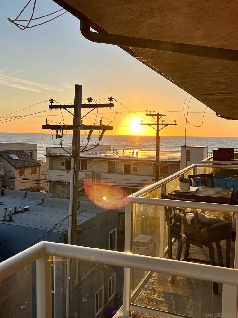 Top floor boasting Ocean & Mission Bay views! Highest elevation unit in desirable Mission Beach! Southern views include downtown skyline & OB Pier. Northern views of ocean & crystal pier from the bedroom. Pics don't do views justice. Located in the heart of Mission Beach a literal stones throw from the sand/boardwalk!