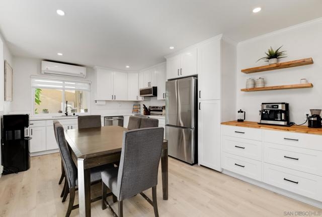 Gorgeous 3 bedroom, 1.5 bath townhome in Mission Valley! Move-in ready, end-unit townhome with attached deck, laundry room, brand new A/C & heating. Brand new dual pane windows, custom cabinets with pantry wall and coffee station, quartz countertops, and high-end stainless steel appliances! Come fall in love with this open concept home. A large living room with a beautifull brick fireplace with wooden mantle and shelving over-looking the open greenbelt out your front door. Second floor features 3 large bedrooms: a large primary bedroom with ample closet space and custom shelving; 2 additional bedrooms with large closets overlook the green areas; large bath with dual sinks and full size bathtub, and bonus attic space for storage with pull down stair access. An additional half bath is located downstairs for convenience. This unit has it all! Centrally located, minutes SDSU, Fashion Valley, Friars Rd and to all Mission Valley has to offer. Truly a must see.