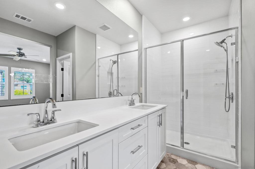 Welcome home to Pacific Village. Located in one of the newest and most-desirable townhome communities in the award-winning Poway Unified School District. No Mello-Roos fees. This home features and open-concept layout with the kitchen, family and dining room without walls is perfect for gatherings of friends and family. Chef's kitchen is highly-upgraded and has all the space needed to entertain guests, with a large island and sizeable pantry. Large balcony with plenty of space and views of Black Mountain. Primary bedrooms has a large closet and spacious bathroom, double sinks. Spacious attached 2 car garage and driveway, in addition to 2 parking decals and 2 guest permits. Tankless water heater and solar panels. Reverse osmosis, water-softner and many other smart features.
