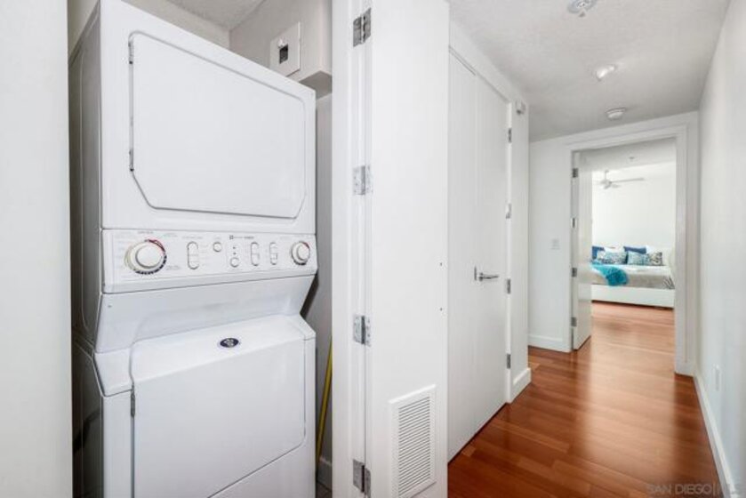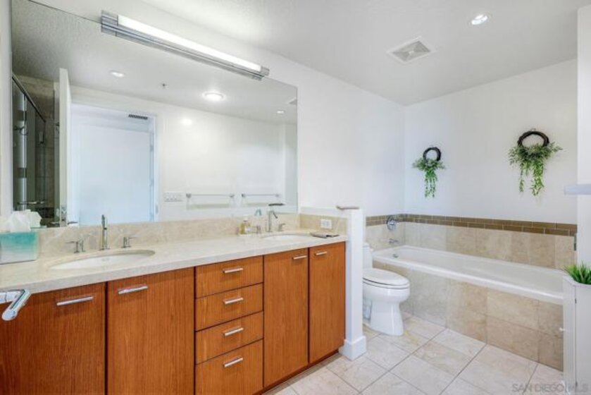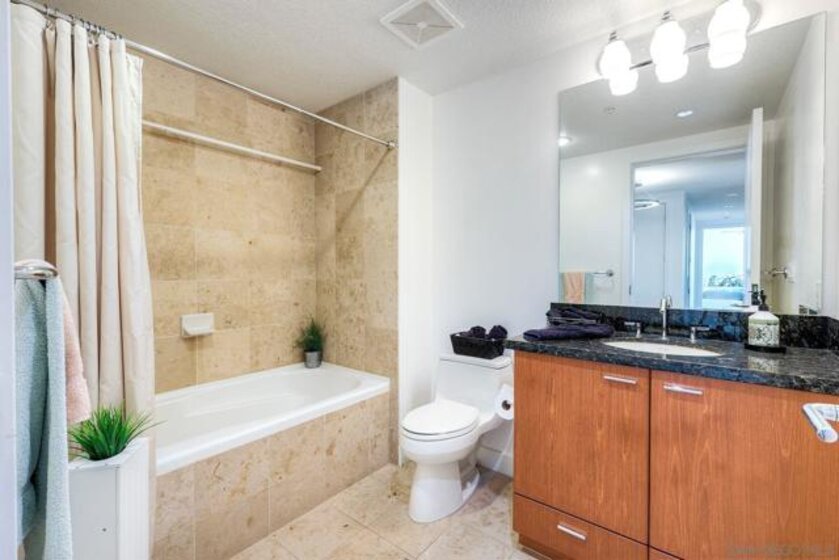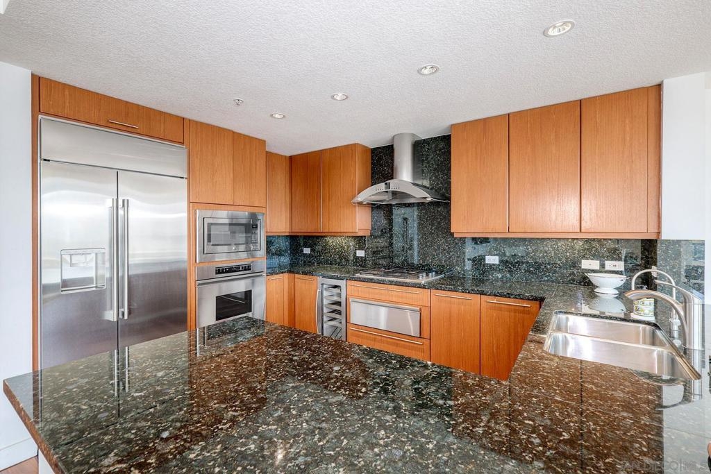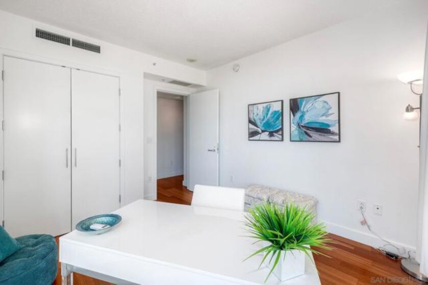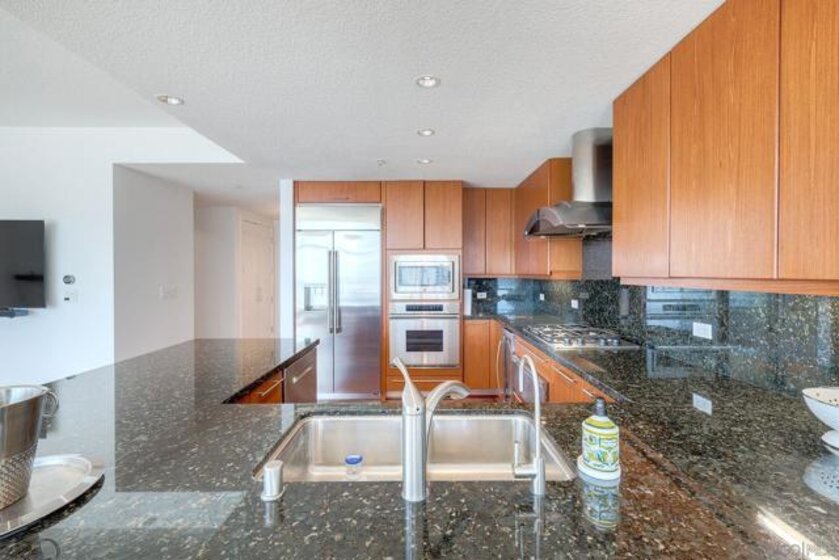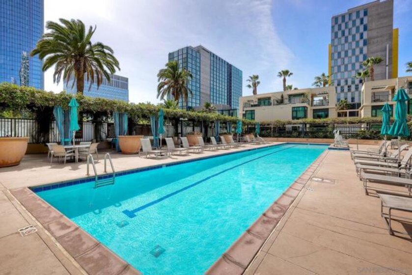 Elegant ocean and bay view residence in Grande South featuring the most desirable floorplan with two bedrooms plus a bonus room. Situated on the 18th floor, the home offers unobstructed southwest-facing views of San Diego Bay, the Pacific Ocean, and the city skyline. Refined interiors include a spacious primary suite, hardwood floors throughout, a cozy fireplace, Nest thermostats, battery-operated window shades, and a gourmet kitchen with a new GE Monogram refrigerator. The expansive balcony extends the living space and provides the perfect setting to enjoy panoramic views and sunsets. 2 side by side parking spaces. Grande South amenities include 24-hour concierge service, meeting room, party room and lounge with full kitchen and fireplace, visitor’s suite for guests, landscaped gardens, private tree-lined courtyards, individual storage lockers, bicycle storage, an 80-foot outdoor swimming pool, whirlpool spa, sauna and steam rooms, changing rooms with lockers, and a fully equipped exercise room. Floor plan is in associated documents. Seller will consider Seller Financing.