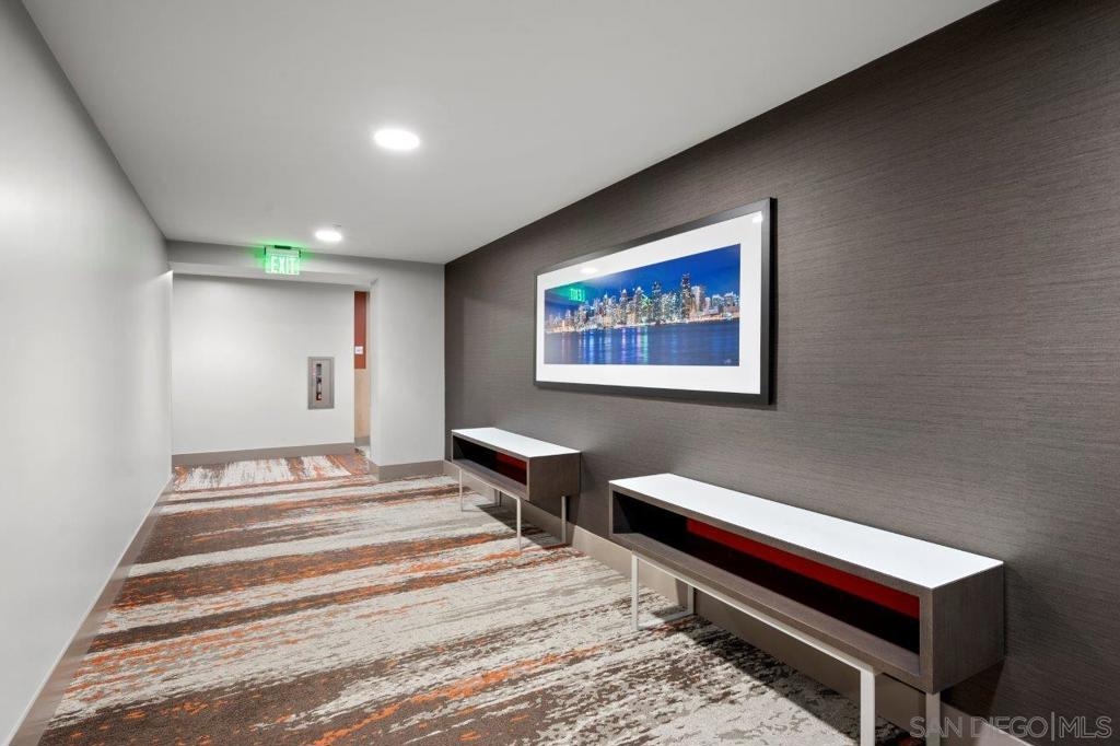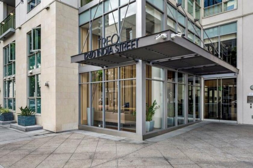 This 12th floor Treo residence offers Downtown San Diego skyline views from every room! Modern LVP flooring runs through the open living area and bedroom. Floor-to-ceiling windows flood the condo with natural light controlled by chic Hunter Douglas silhouette shades. The kitchen showcases warm wood cabinetry, quartz counters and center island, a full suite of upgraded stainless appliances with gas range, built-in microwave, and dishwasher - all under vivid lighting. The bedroom offers two closets, one with a custom organization system, plus a bathroom with a quartz vanity and combo shower/tub. Other features include a private balcony, fresh paint throughout, front-load washer and dryer, gas fireplace, RARE private storage in a temperature-controlled room, and a secured parking space on the first floor. Treo sits at the center of it all: walkable to the waterfront, Little Italy, the Gaslamp, and everything that makes downtown San Diego worth living in. Great building amenities including pool, hot tub, gym, BBQs, community rooms, and staffed lobby with LOW HOA dues. Long regarded as one of the best values in Downtown San Diego, the Treo HOA is exceptionally well managed, keeping dues low while maintaining a high level of building services and amenities. Enjoy a heated pool and spa, fitness center, multiple recreation and meeting rooms, barbecues and peaceful courtyard, plus security and concierge services. The lobby, hallways, and amenities have all been recently refreshed to foster a warm contemporary feel. Walk to the multitude of eateries and shops in Little Italy or Portside Pier, or take a slightly longer stroll to Seaport Village in the Marina District or the bustling Gaslamp Quarter. Treo is both FHA and VA approved.
