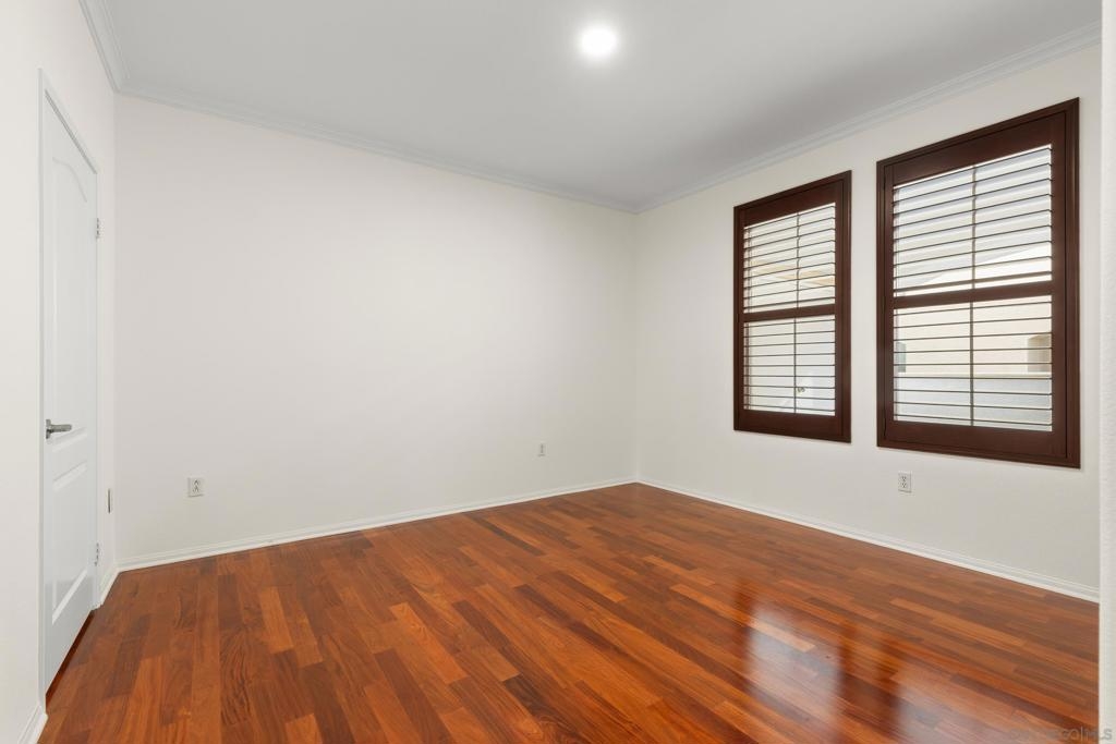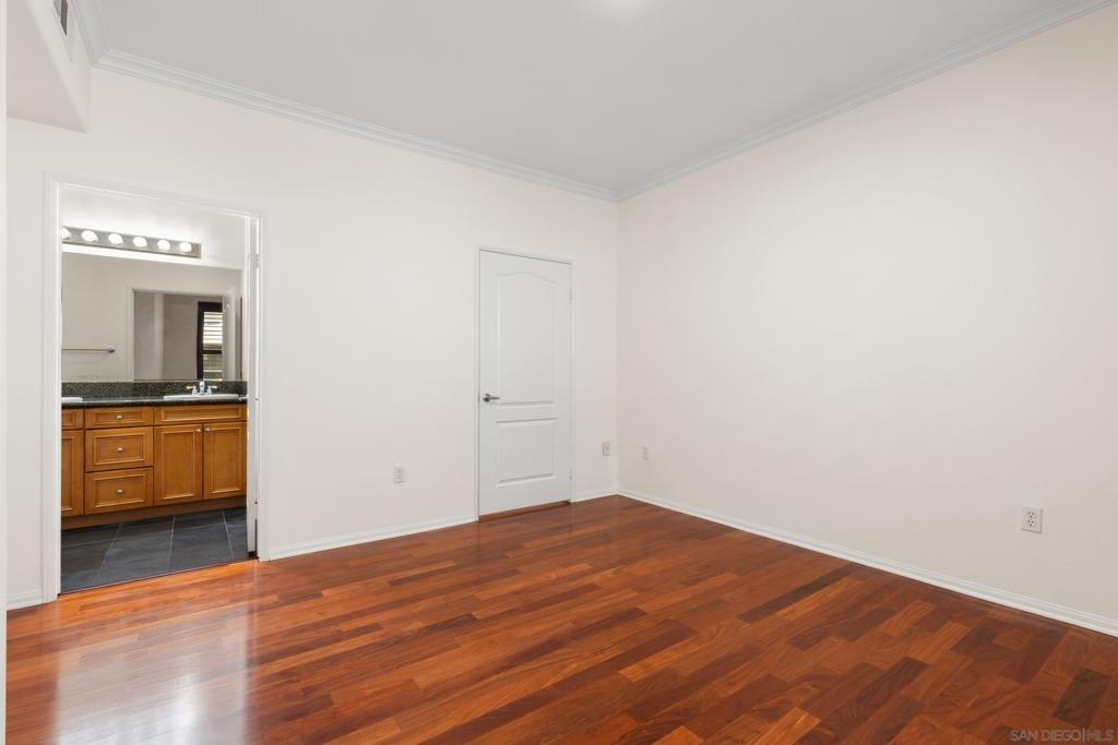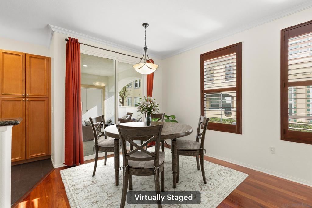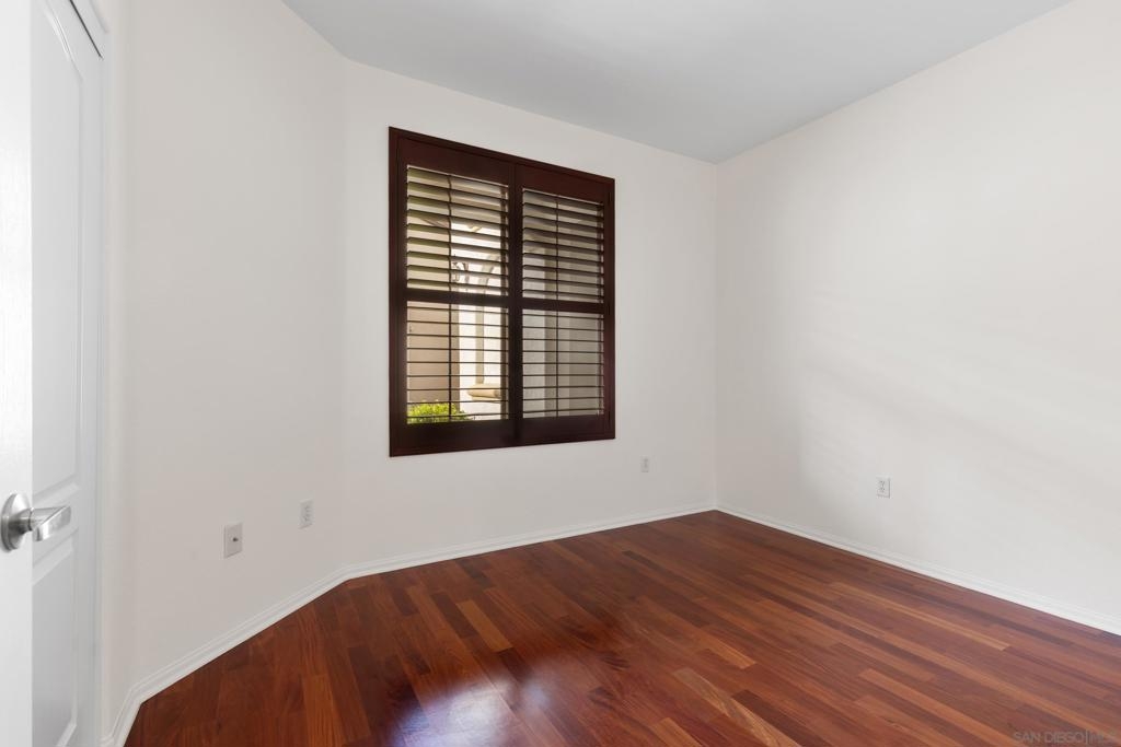 Location, Location! Don't miss this rarely available single story 3 bedroom/2 full bath in highly coveted Savannah Terrace! Premium ground level home with no stairs and absolutely move-in ready! Owners have taken pristine care. Fresh paint, beautiful wood floors, gas fireplace & stainless steel appliances. Central A/C & heat. Spacious outdoor patio with private storage closet. Split wooden shutters on each window. Immaculate 2 car garage with direct entry. In-unit laundry room. Huge walk-in closet in primary bedroom. Serene community & very quiet location. Ez freeway access and just steps from eateries & markets. Very low HOA dues. Wonderful amenities include mile-long meandering walking path, resort-style pool & hot tub, fitness center, sauna, BBQ area, clubhouse, tennis courts and basketball area (both courts are well lit at night!). Located within the award-winning Poway Unified School district. One of the most desirable communities in Sabre Springs. Love where you live!!