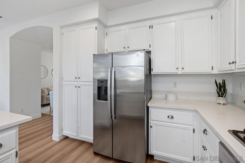 Experience a stylish, remodeled townhome with dual primary suites in the Monaco community of Torrey Highlands. Inside, luxury vinyl plank flooring flows throughout, complemented by ceiling fans in every room. The updated kitchen features quartz countertops and stainless steel appliances, while refreshed bathrooms modern fixtures. With no neighbors behind, enjoy a private yard with pavers and turf—perfect for relaxing or entertaining. Close to freeways, top schools, shops, and dining, this home blends comfort and convenience.