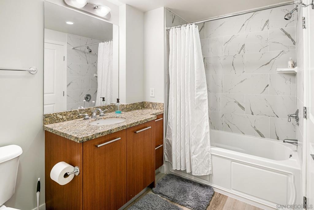 This exquisite one-bedroom home exemplifies pride of ownership. It boasts durable hard surface flooring throughout and an efficient organized closet system. The bathroom features stunning custom tile work in the shower. Step out onto your generously sized extended balcony, where you can relax to the soothing sounds of cascading waterfalls in a lush tropical courtyard. Plus, enjoy the convenience of parking situated close to the elevator. SEE THE VIRTUAL TOUR FOR MORE BUILDING COMMUNITY PHOTOS. Location Location Location....Being set between Little Italy; and the Waterfront provides the ultimate walk-ability score. Breeza possesses a true community feel and "casual elegance" Spectacular views occur throughout the building without having to be positioned high in the tower. Proud winner of landscape awards; Breeza features resort like amenities including roof top terrace with stunning views, heated pool and spa, community room, exercise room, common area wi-fi, business center and on-site professional management. *Room Measurements to be confirmed by Buyer.