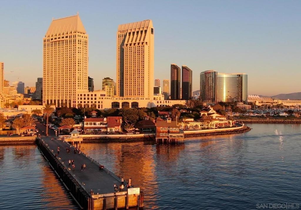 Move-in ready Little Italy loft with dual terraces & skyline views! Step into urban sophistication in this immaculate, top-floor, loft-style one-bedroom home in the coveted Village Walk community at the heart of Little Italy. This beautifully enriched residence boasts 20-foot soaring ceilings, abundant natural light, and hardwood and tile flooring throughout the main level. The open-concept layout features a chef’s kitchen with pantry, spacious dining and living areas, and two private terraces showcasing stunning easterly city and skyline views. Upstairs, the loft bedroom offers a dual-sink full bath, a large custom closet, and elevated views. A fabulous flex space with its own bath on the main level is ideal for a home office, studio, or guest area! Move in and immerse yourself in one of San Diego’s most vibrant neighborhoods, surrounded by acclaimed restaurants, cafés, the San Diego Harborfront, Downtown, Balboa Park, and the world-famous Zoo—all just minutes from your doorstep. Discover effortless living with the perfect blend of style, comfort, and location in this rare Little Italy residence!