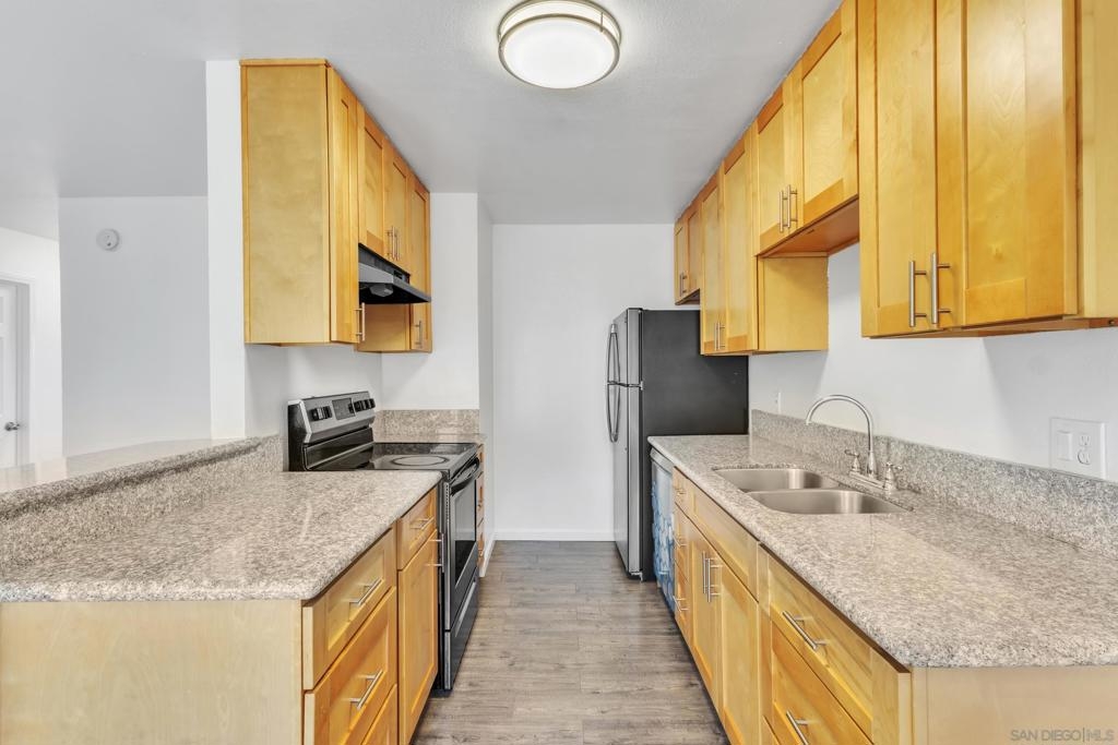 REDUCED & Move-in-ready! Bright & Spacious Upper-Floor Condo in Gated Harbor Vista Community. Discover this updated (2022) one-bedroom, one-bathroom upper floor condo offering a bright and airy upper-floor living space in Harbor Vista community. This home features upgrades, including stainless steel appliances, kitchen and bathroom countertops, and an open-concept layout that maximizes comfort and functionality. All interior paint wall to wall and floor to ceiling just done! Closet in hallway can be converted to washer and dryer in unit if approved by HOA. Many units have been approved. The gated community provides a resort-style pool and spa, on-site laundry facilities, and lushly landscaped common areas. Conveniently located near freeway access, this home is just minutes from downtown San Diego, Balboa Park, and the San Diego Zoo. San Diego International Airport is only seven miles away, while Mission Valley and Fashion Valley shopping centers are within a short 10 min drive. Enjoy easy access to the beaches, Gaslamp Quarter, and Little Italy, with the U.S.-Mexico border just 20 minutes away and Coronado Island only a 10 min drive! Experience comfort, convenience, and accessibility in this well-maintained, move-in-ready home.