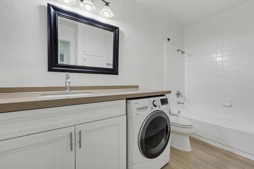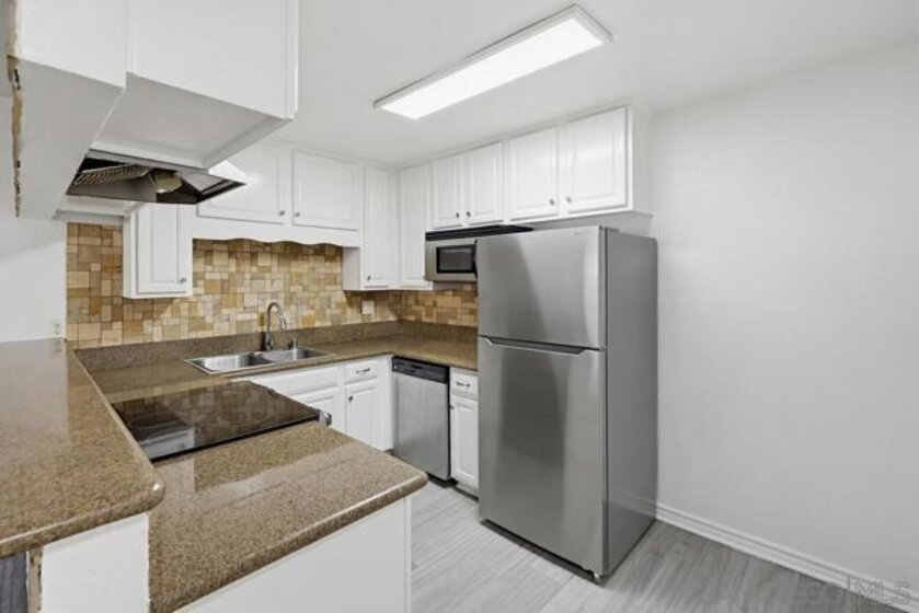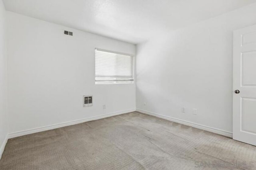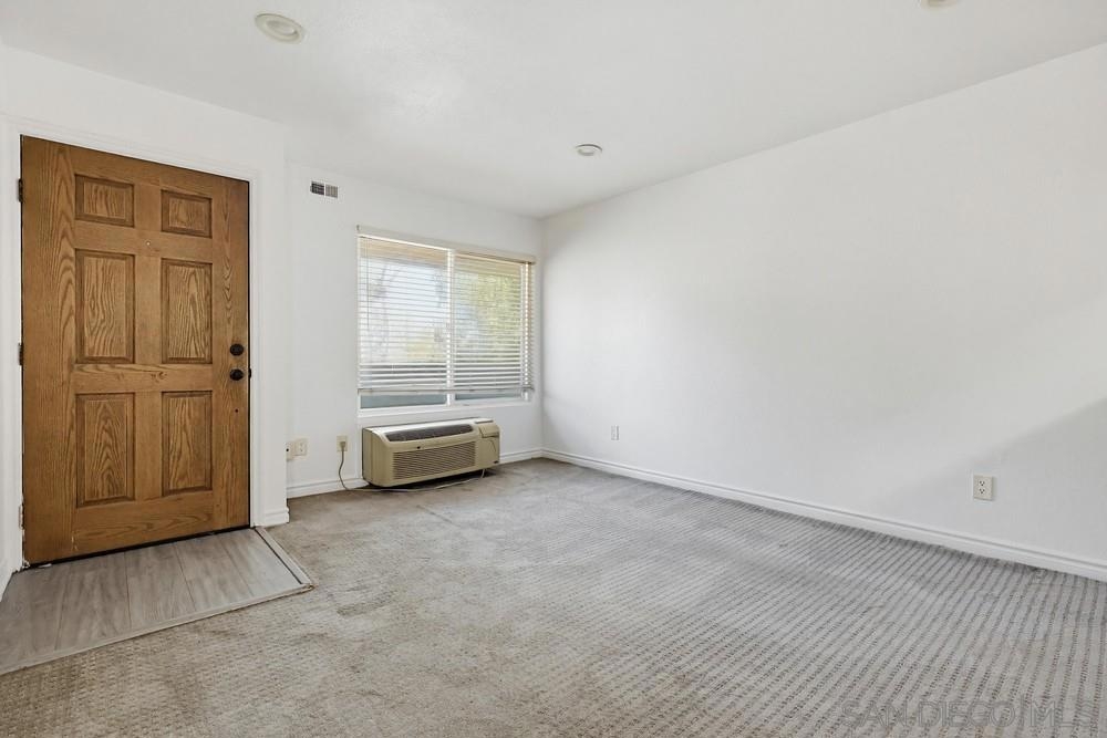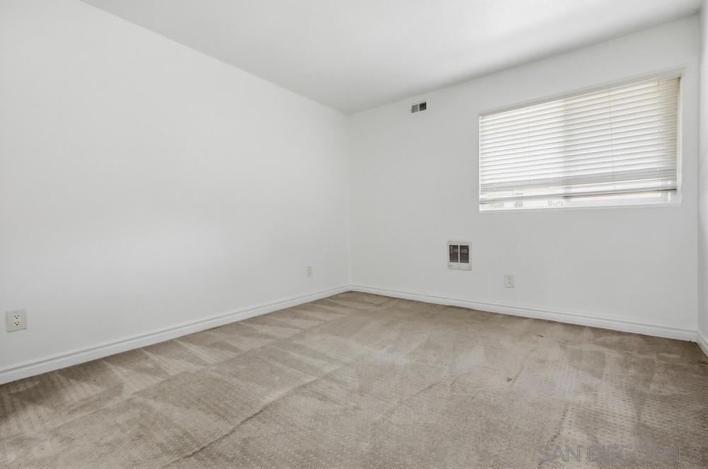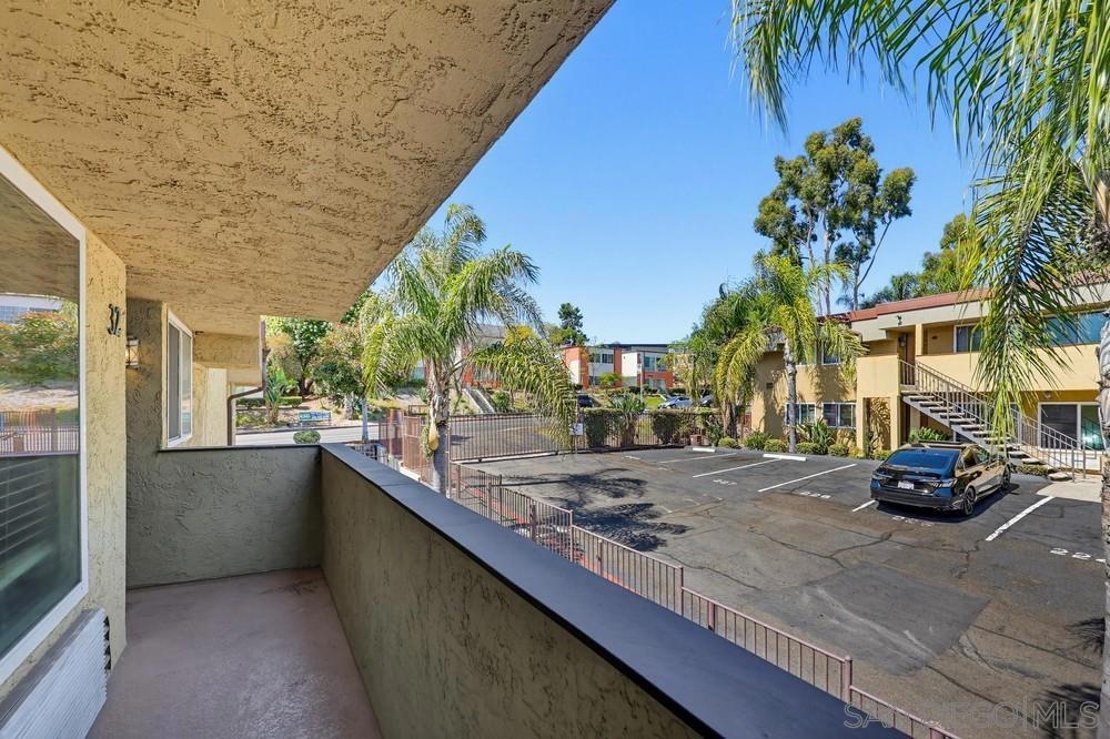 Beautifully updated upstairs 1 bed, 1 bath condo 521 sq ft located in the gated Las Palmas Villas community in Oak Park. This move-in ready home features an open and functional layout with laminate flooring in the kitchen and bath, fresh interior paint thoughout and carpet in the living room & bedroom. The upgraded kitchen showcases granite countertops, shaker-style cabinetry, stainless steel appliances, and recessed LED lighting, creating a bright and modern space. Dual pane windows enhance energy efficiency and comfort throughout. The bathroom has been tastefully updated with a vanity, fixtures, and an in-unit washer/dryer for added convenience. The spacious bedroom includes a large walk-in closet, providing ample storage. Ideally situated in a gated community with easy access to shopping, dining, and commuter routes, this home is perfect for first-time buyers, investors, or those seeking low-maintenance living in a central San Diego location. Less than 10 minutes to downtown San Diego!
