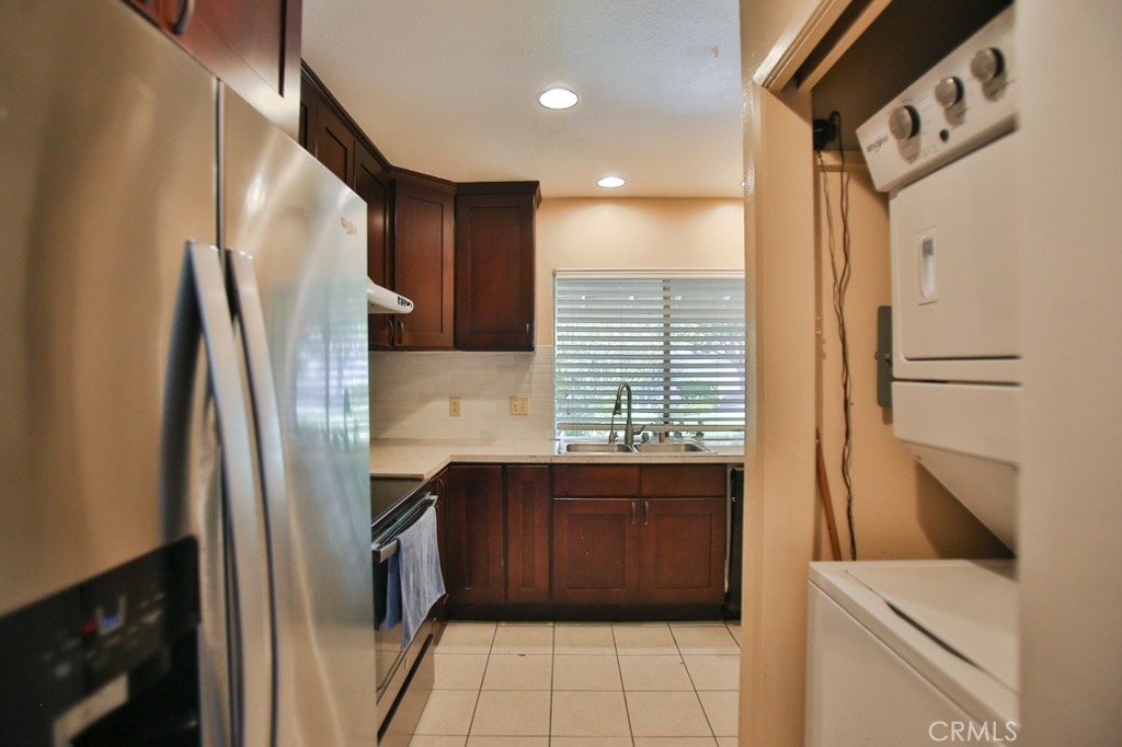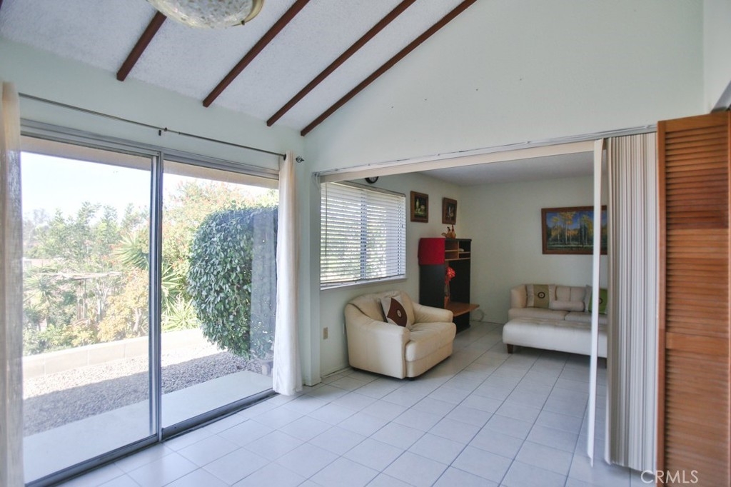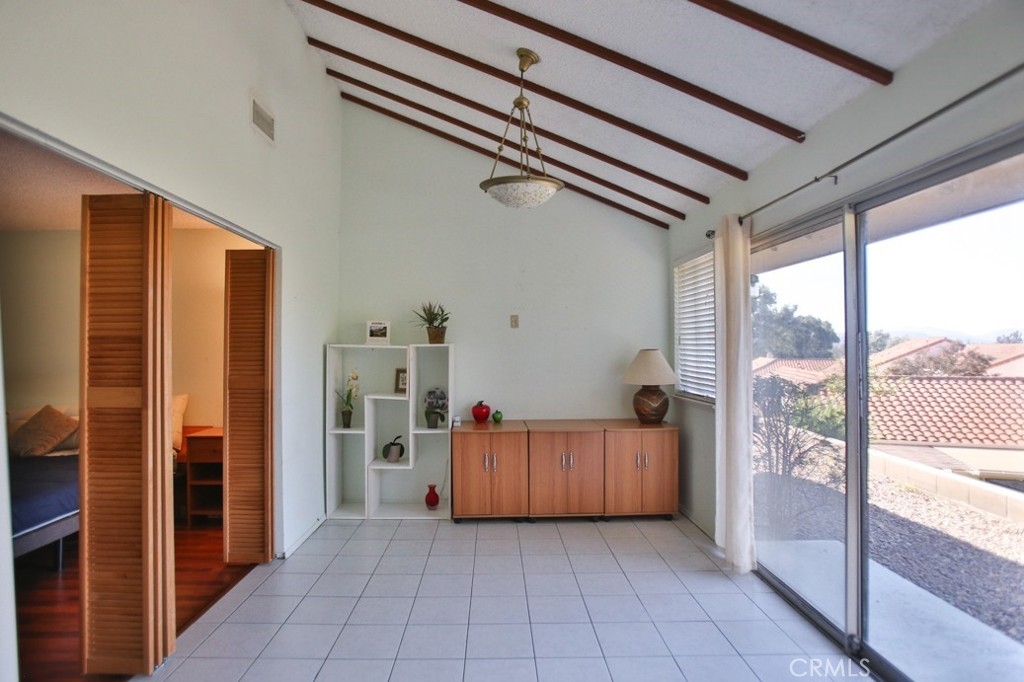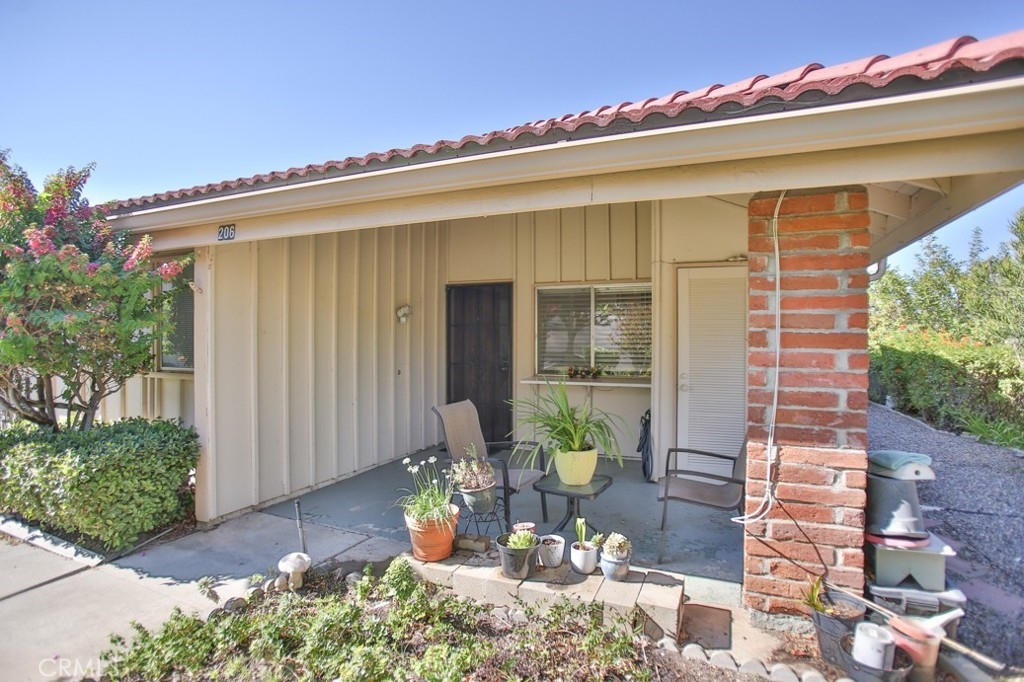 Welcome home to serene and peaceful living in the highly desirable 55+ Oaks North community. This light and airy, single-story condo, complete with a private sitting courtyard, is the perfect space for tranquil living in the heart of Rancho Bernardo. As an end unit with only one shared wall, it offers additional privacy. The spacious primary bedroom, featuring mirrored closet doors, opens up to the bright family room with vaulted ceiling adorn with wooden beams. It opens to the living room with a dining area. The kitchen is updated with beautiful wood cabinetry and quartz countertop. This home includes a newer A/C and water heater, plus the convenience of an indoor washer/dryer. There is one carport parking space right outside the unit and an additional storage closet. Oaks North Community Center membership includes a pool, spa, library, tennis and pickleball courts, and other amenities. Conveniently located near restaurants, shopping, and a golf course with easy access to the freeway, this is a must-see to appreciate. Move-in ready!