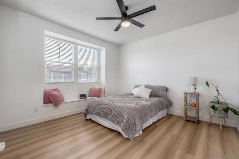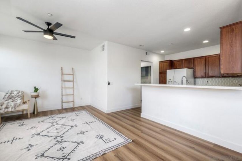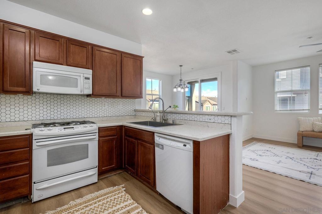 Lovely West Santee Townhome in Aubrey Glen community. 2 bedroom 2 and 1/2 bath corner unit with tons of natural light. Views of green canyon and East facing mountains. New Luxury vinyl flooring throughout home makes this home feel brand new. Full size indoor laundry on the 2nd floor. Open concept kitchen with beautiful white granite counter tops and water softening system. XL Primary bedroom with walk in closet and cute window seats. 2 car garage with lots of storage space. Close to the 52 makes an easy commute to La Jolla Beaches. Quick access to 125 freeway and your at Petco Park within 20 minutes. Well maintained community and Low HOA make this perfect for first time buyer or investor.