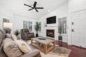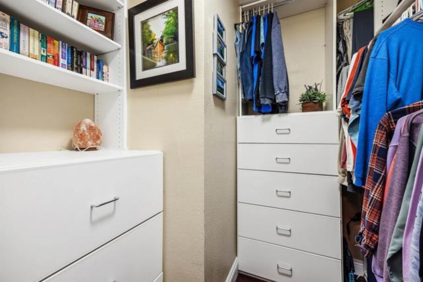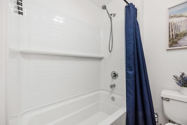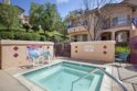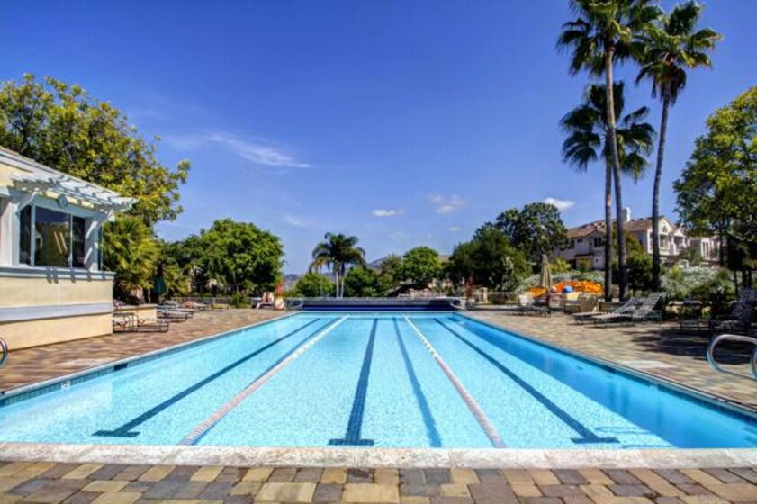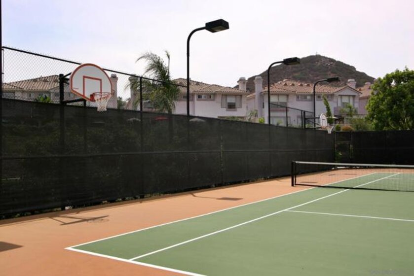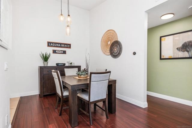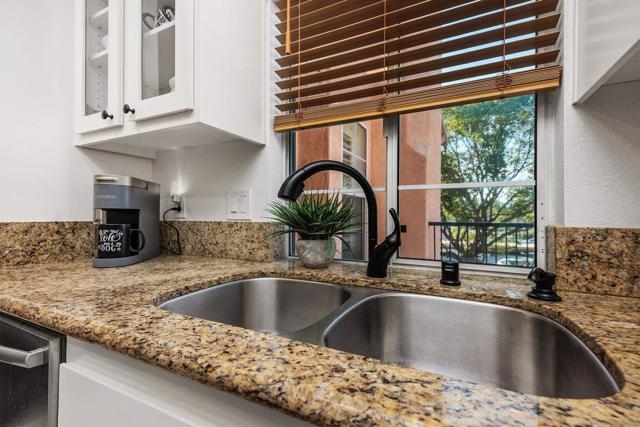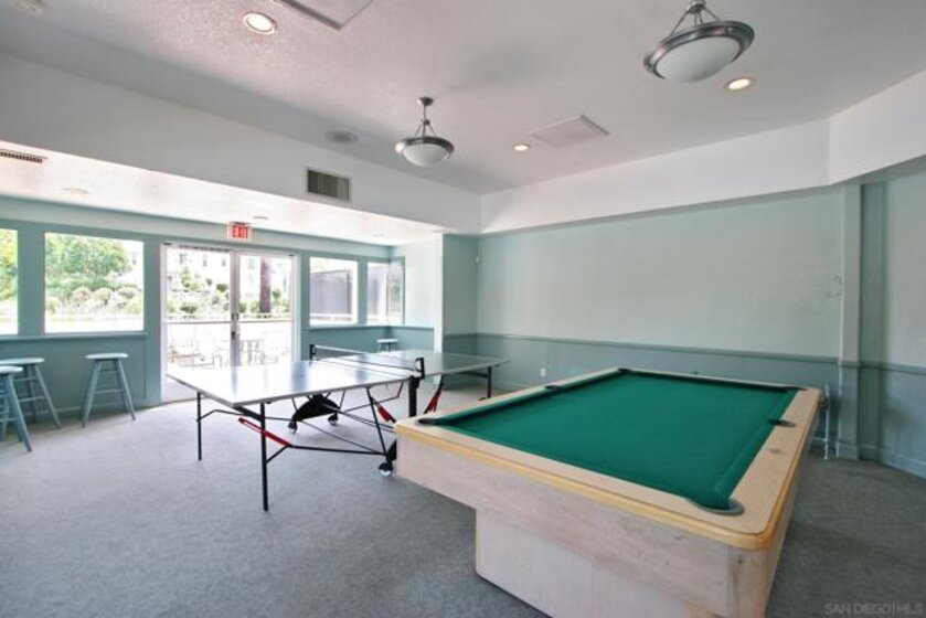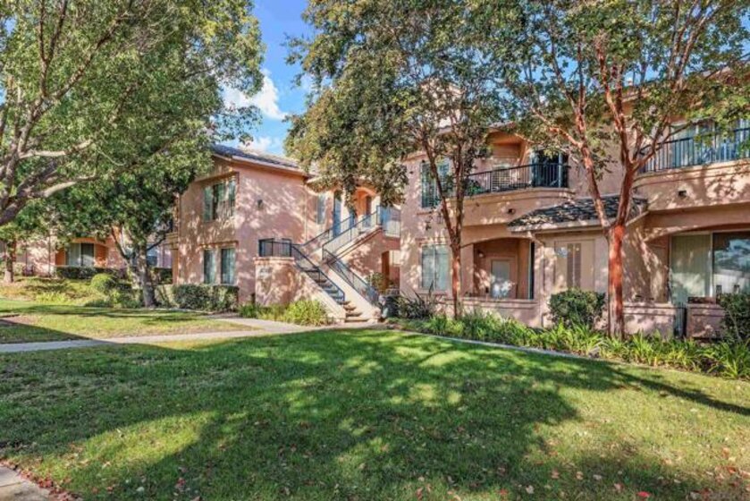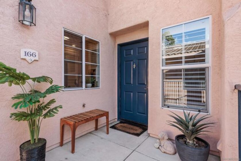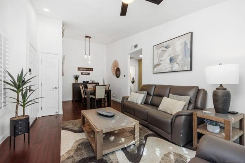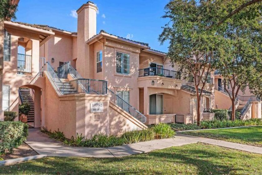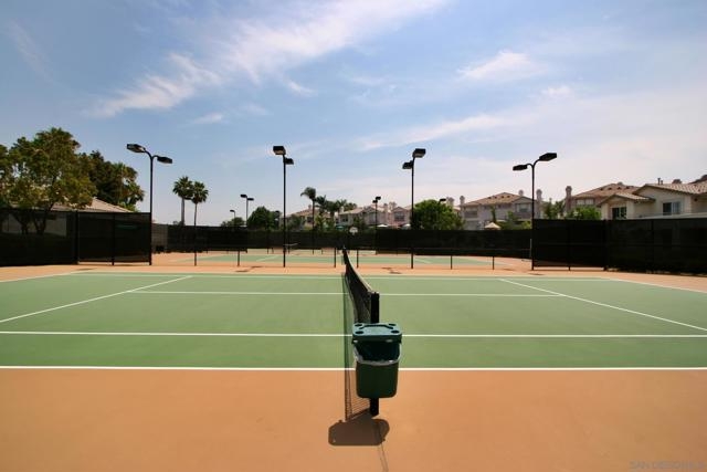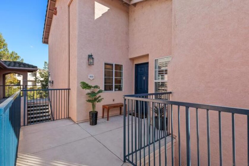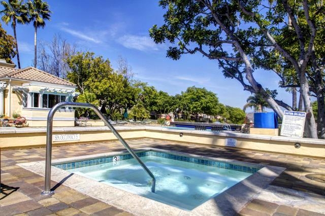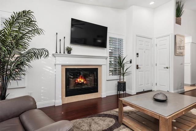 Approximately 716 square feet, this one-bedroom, one-bathroom top floor condominium features a spacious and charming layout with abundant natural light and inviting architectural details. The home boasts dark bamboo flooring throughout the living areas and primary suite, complemented by custom mosaic ceramic tile in the kitchen and tile in the bathroom. The bright and cheerful interior is enhanced by ample cabinetry, stainless steel appliances and a cozy fireplace, creating a warm and welcoming atmosphere. The primary suite offers a large walk-in closet with built-ins, providing excellent storage space. The bathroom is similarly spacious, with upgraded lighting and fixtures. In unit laundry for convenience. The home's exterior showcases lush landscaping, a spacious balcony with scenic views of the greenbelt and mature trees, offering a private and serene retreat. The community amenities are resort-style, featuring pools, spas, a fitness center, tennis courts, pickleball, a recreational room and a clubhouse near a picturesque pond. The gated community also provides assigned parking in front of the building, as well as plenty of guest parking, ensuring convenience for residents. Ideally located with easy freeway access and close to shopping, this condominium offers a comfortable and well-appointed living experience. Acclaimed Poway Unified Schools.
