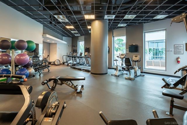 Park Terrace offers the ultimate venue for Petco Park (Padre season ticket holders) and concert/event entertainment. Turnkey Light and bright 1-bedroom home offers views of Petco Park, San Diego library, and the community Roof top deck. This is an interior unit with large balcony nicely removed from the street yet located directly across the street or just steps from the Stadium. Floor to ceiling windows fill the living/dining area with natural light. Open concept Kitchen and breakfast bar feature upgraded granite counter tops, backsplash, and stainless-steel appliances. Wood floors upgraded lighting throughout, full-size stacked LG W/D, a double wide large closet in the MB, one additional closet in the hallway, and one underground/secure assigned parking space. Park Terrace offers on site security and property manager, community room with billiards table, fitness center, and a rooftop BBQ area. Equipment: Range/Oven Sewer: Sewer Connected Topography: LL