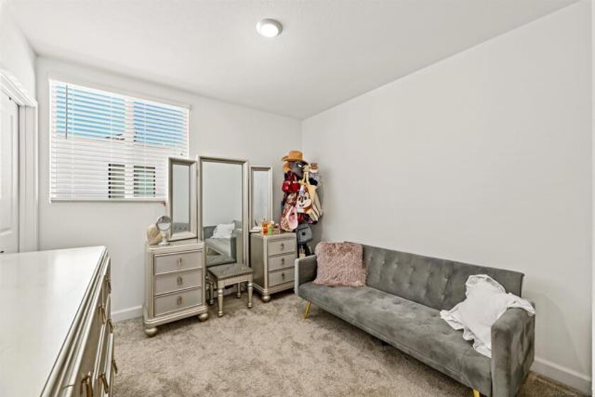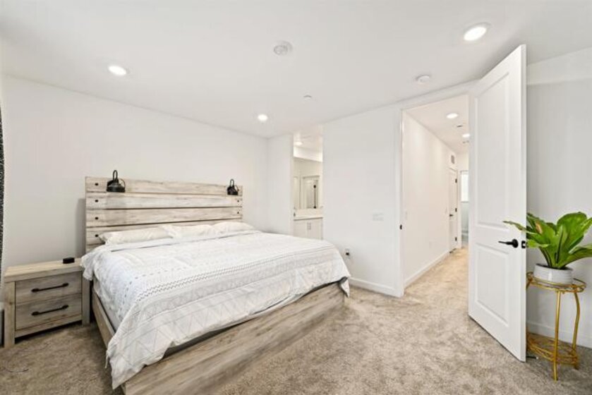 Welcome to this well-maintained 3-bed, 3-bath home in the desirable Epoca community. Two bedrooms feature ensuite baths for added privacy. The kitchen with stainless steel appliances opens to the living area which is ideal for daily living and entertaining. Enjoy a private balcony, tandem PASS-THROUGH GARAGE with extra storage, and OWNED SOLAR PANELS for year-round savings. Conveniently located near the freeway in a peaceful, walkable neighborhood with parks, green space, and community events. Clean, move-in ready, and truly feels like home.