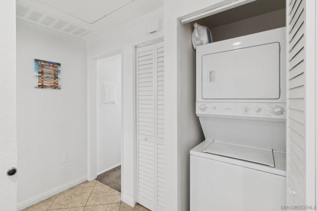 Beautifully updated condo featuring a brand-new AC unit and an open-concept floor plan designed for comfortable living and entertaining. The kitchen showcases new quartz countertops, stainless steel appliances, and a modern sink, complemented by durable tile flooring throughout. This unit is being offered fully furnished—furniture included—making it truly move-in ready. Enjoy a private balcony with pleasant views, perfect for relaxing. Located in the desirable gated River Colony community, residents enjoy secured underground parking, elevator access, and resort-style amenities including a pool, spa, fitness center, and recreation room with Wi-Fi. Conveniently situated near trolley and bus stops, shopping, dining, and outdoor recreation, with direct access to hiking and walking trails along the San Diego River just behind the building. Close proximity to USD, Snapdragon Stadium, and SDSU adds to the prime location appeal. Includes in-unit washer and dryer. FHA and VA approved complex.