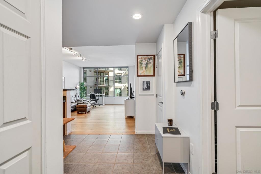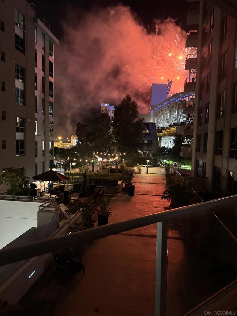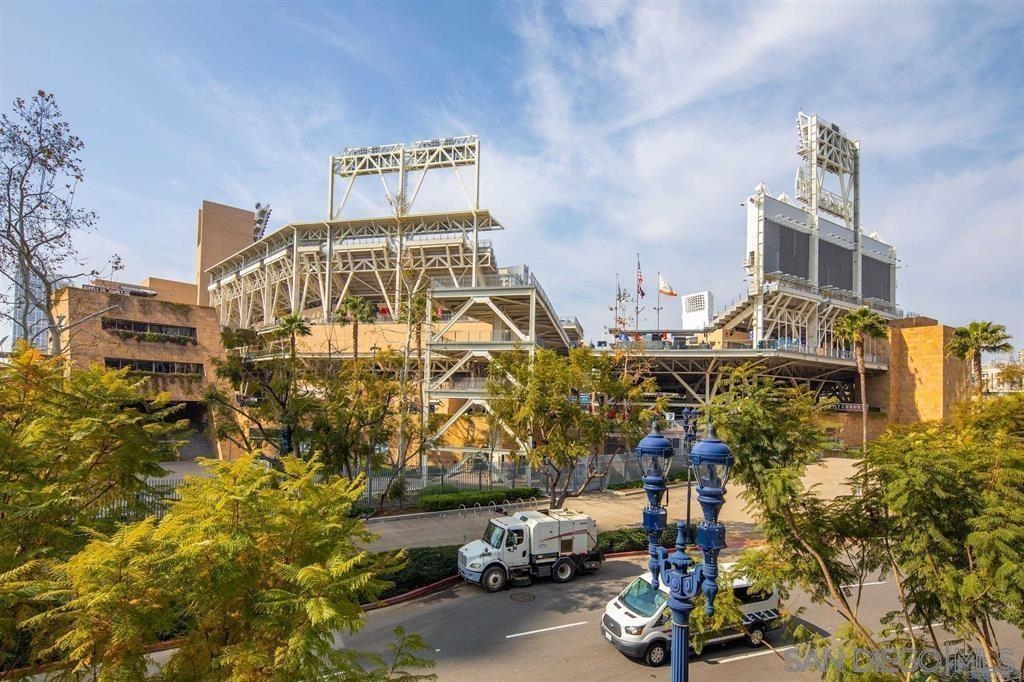 Perfectly positioned across from Petco Park, this thoughtfully designed condo offers a peaceful retreat with incredible city lifestyle perks just a short distance away. Enjoy views of the courtyard and stadium from an oversized balcony that extends your living space outdoors—ideal for morning coffee or evening unwinding. Inside, bright, wide-plank vinyl floors complement the open layout, while the kitchen impresses with granite countertops, stainless steel appliances, and abundant cabinet space. Custom lighting, updated bathroom tile, and organized closets complete the move-in-ready appeal. This residence also includes a dedicated underground parking space. Park Terrace is a VA-approved community offering exceptional amenities, including 24-hour security, a fully equipped fitness center, rooftop BBQ terraces on the 2nd and 5th floors, a recreation room, interior courtyard seating, bike storage, on-site property management, and a sleek, modern lobby entrance. Explore the best of Downtown living—just a short distance to Petco Park, Gallagher Square, the historic Gaslamp Quarter’s shops and dining, the Central Library, bus and trolley transportation, FIT Athletic Gym, and the Harbor Drive Pedestrian Bridge, which connects to The Rady Shell, the Convention Center, Seaport Village, Embarcadero Parks, the Coronado Ferry, and more. The lifestyle you’ve been waiting for starts here. Park Terrace is a VA-approved community offering exceptional amenities, including 24-hour security, a fully equipped fitness center, rooftop BBQ terraces on the 2nd and 5th floors, a recreation room, interior courtyard seating, bike storage, on-site property management, and a sleek, modern lobby entrance. Explore the best of Downtown living—just a short distance to Petco Park, Gallagher Square, the historic Gaslamp Quarter’s shops and dining, the Central Library, bus and trolley transportation, FIT Athletic Gym, and the Harbor Drive Pedestrian Bridge, which connects to The Rady Shell, the Convention Center, Seaport Village, Embarcadero Parks, the Coronado Ferry, and more. The lifestyle you’ve been waiting for starts here.