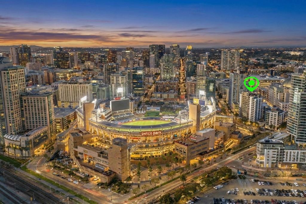 Experience vibrant downtown living in this spacious 1-bedroom, 1-bath condo at Park Terrace, located directly across the street from Petco Park. Offering 808 sq ft, the open layout is designed for comfort and entertaining, featuring a roomy kitchen with stainless steel appliances, an in-unit washer and dryer, and a large balcony to soak in the city energy. The well-sized bedroom features a walk-in closet and plenty of space to unwind. Enjoy the convenience of one assigned parking space, plus controlled access and 24-hour security for added peace of mind. Park Terrace residents enjoy a well-equipped fitness center and a rooftop BBQ terrace, ideal for hosting friends or relaxing above the buzz of downtown. Step outside and you’re just moments from the Gaslamp Quarter, top restaurants, shops, and nightlife—bringing the best of San Diego right to your doorstep. VA approved and move-in ready—schedule your private tour today.