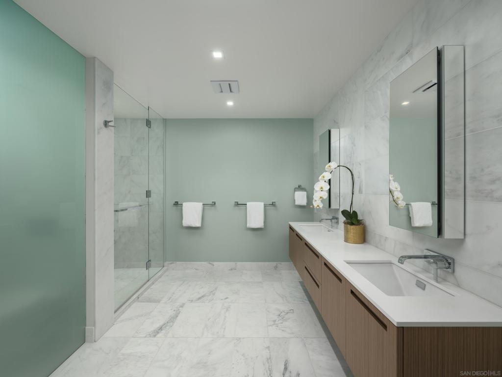 Welcome to a world of refined sophistication and effortless luxury at The Park, Bankers Hill—San Diego’s premier address for elevated living. This exceptional residence offers an unparalleled fusion of contemporary design, breathtaking panoramas, and world-class amenities, all set within one of the city’s most prestigious enclaves. Arrive in grandeur via your designated direct-access elevator, stepping into a luminous 2,675-square-foot sanctuary adorned with floor-to-ceiling glass walls, exquisite designer finishes, and an open-concept layout that seamlessly integrates indoor and outdoor living. This southwest corner residence is bathed in abundant natural light, seamlessly integrating the great room, dining area, and an expansive 661 square feet of private terraces—meticulously positioned to showcase breathtaking panoramas of the entire San Diego skyline, the Pacific Ocean, and the verdant beauty of Balboa Park. On the Fourth of July, indulge in the rare privilege of watching FIVE spectacular firework displays from the comfort of your own terrace, a true testament to this home’s extraordinary vantage point. A true chef’s sanctuary, the newly remodeled gourmet kitchen is a statement of both function and artistry, updated with top-of-the-line Wolf appliances, bespoke Italian Boffi cabinetry, and an oversized waterfall-edge island encased in Silestone quartz. Whether hosting an intimate gathering or a grand celebration, this impeccably designed space ensures every culinary experience is nothing short of exceptional. Retreat to the primary suite, a serene sanctuary of refined sophistication, where sweeping 270-degree panoramic views create a breathtaking backdrop of unparalleled beauty. Thoughtfully designed for the utmost comfort and refinement, this private haven features a spa-inspired en-suite bath adorned in lavish marble, boasting a deep soaking tub, a frameless glass shower, and a sleek floating vanity with double sinks. The expansive walk-in closet is impeccably outfitted with a sophisticated custom organizing system, seamlessly blending form and function to create an exquisitely curated retreat for the most discerning residents. Indulge in vibrant sunsets over the San Diego Bay and across the downtown skyline, or awaken to the sun gracefully rising over the stunning architecture of iconic Balboa Park from your private terrace, where breathtaking panoramas unfold from dawn to dusk. The second expansive bedroom serves as a luxurious secondary suite, complete with an impressive en-suite bathroom featuring dual sinks and three generous closets, including a spacious linen closet. The additional bedroom offers versatility, ideal for guest accommodations, a private study, or an elegant media lounge. The Park’s exclusive amenities rival those of the world’s finest resorts, offering a resort-style pool and spa, a state-of-the-art fitness center with a dedicated yoga studio, a chic clubroom, and an outdoor owner’s lounge with fire pits, barbecues, and intimate seating areas. Wine aficionados will delight in the private wine room, while pet owners will appreciate the convenience of the dedicated pet-washing station. Homeowners also enjoy the privilege of two fully furnished guest suites, complete with kitchens, available for five nights a month completely included for a nominal $275 cleaning fee. Completing this unparalleled offering are two side-by-side parking spaces with EV charging and an oversized storage unit, all housed within this architectural masterpiece. Situated in the heart of Bankers Hill, this residence offers effortless access to San Diego’s finest dining, cultural landmarks, and the vibrant energy of downtown. With Balboa Park’s world-class museums, botanical gardens, and scenic trails just steps away, this home presents a rare opportunity to experience the pinnacle of sophisticated urban living—where luxury, location, and lifestyle converge in perfect harmony.