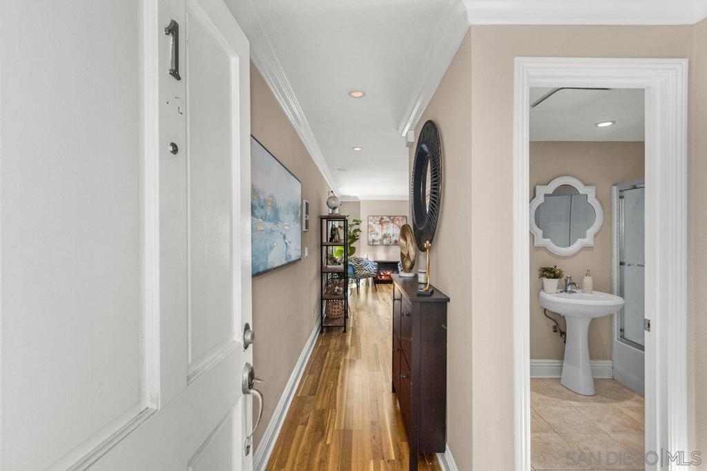 This stylish 2-bedroom, 2-bath condominium is located in the highly sought-after Mission Hills community and offers spectacular panoramic views of the bay, ocean, and city from a desirable corner unit. The open concept layout features a large kitchen with slab countertops, stainless steel appliances, wood floors, crown molding, custom baseboards, plush carpeting, recessed lighting, a cozy fireplace, in-unit laundry with a full-size washer and dryer, and abundant natural light throughout. The primary suite boasts a newly remodeled, spa-like bathroom. Step outside to a spacious private view deck perfect for relaxing or entertaining. The home includes two parking spaces and is ideally situated near top-rated restaurants, shopping, entertainment, and all that San Diego has to offer. This is a must-see property!
