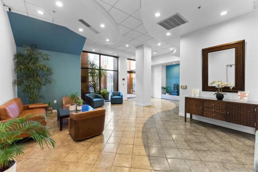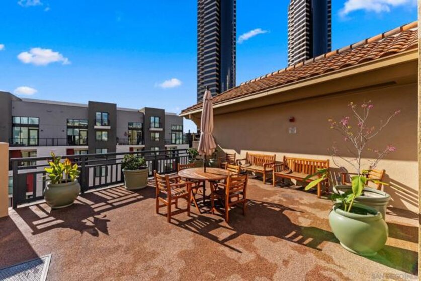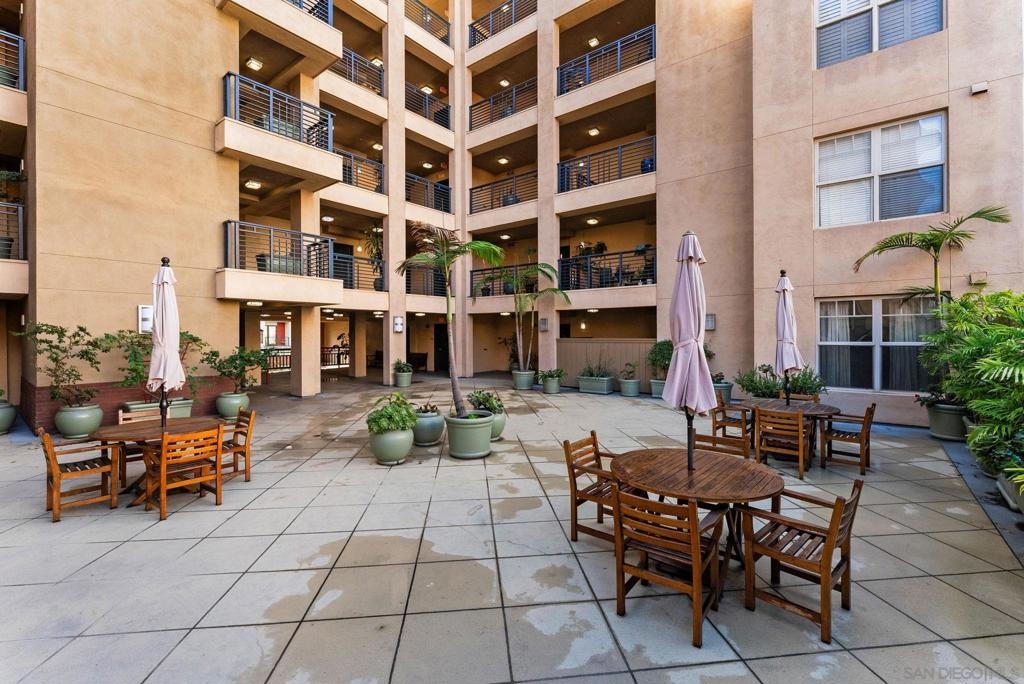 Welcome to Pacific Terrace, an intimate, private building in the coveted Marina District of Downtown San Diego. Perfectly positioned where location and convenience converge, this stylish 4th floor 1 bedroom, 1 bath condo offers exceptional privacy and natural light. South-facing exposure, floor-to-ceiling windows, and French doors create a bright, open living space that flows seamlessly to the private balcony. The well-appointed kitchen features stainless steel appliances, generous cabinetry, ample counter space, and a pantry. The spacious bedroom serves as a serene retreat with expansive windows and abundant closet space, while the separate bathroom is ideal for both everyday living and guests. Pacific Terrace offers a beautiful courtyard with seating, BBQ area, skyline views, secure entry, gated underground parking, and a welcoming lobby. Enjoy everything Downtown San Diego living has to offer!