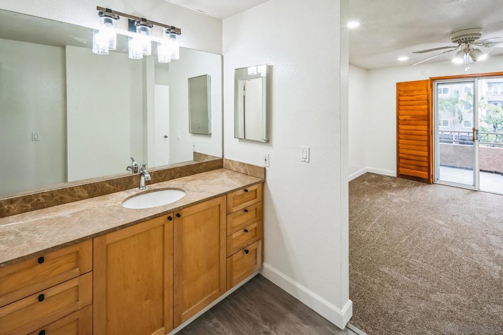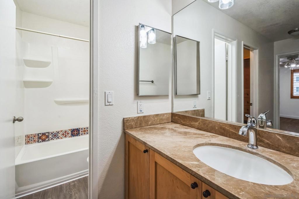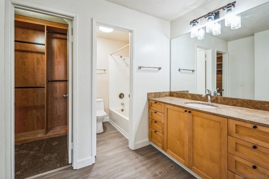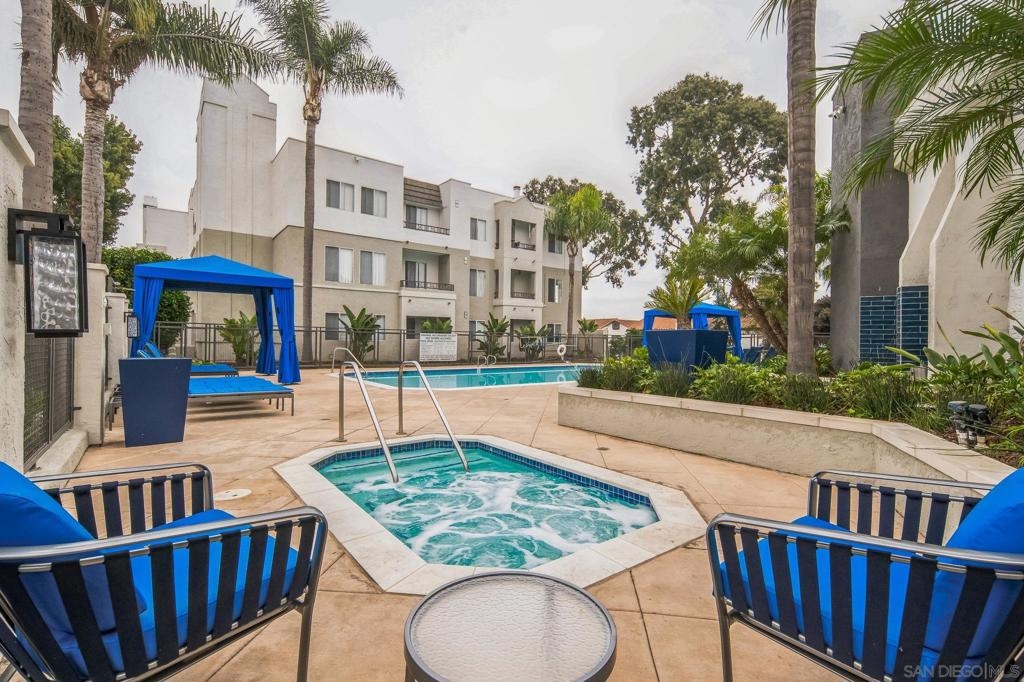 Beautiful, upgraded 2 bedroom and 2 bath condo!!! This unit comes with upgraded bathrooms, upgraded kitchen, custom shutters, and gorgeous wood flooring. This amazing property features luscious landscaping, a community pool and spa and a gym with weight and cardio room. Two gated, tandem parking spots are included (four parking spaces!!). Conveniently located off the I-5 near the UCSD campus, shopping centers and restaurants.