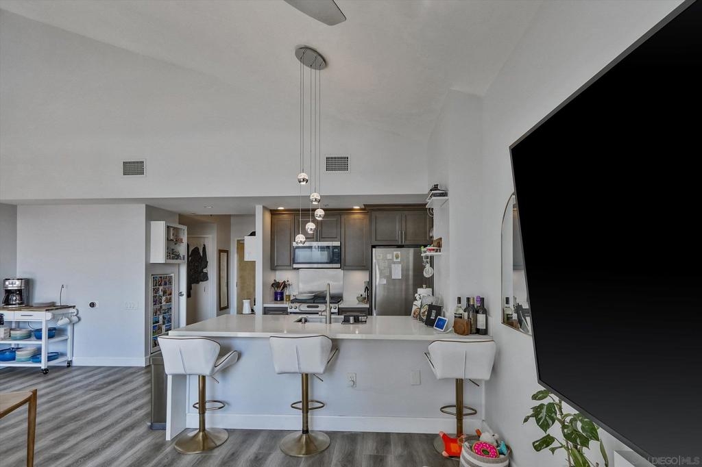 STUNNING WESTERLY TOP FLOOR END UNIT TOWNHOME TWO STORY VAULTED HIGH CEILINGS NEARING 20'. OPEN KITCHEN FLOORPLAN WITH MODERN UPDATED KITCHEN FINISHES AND HARDWOOD FLOORING. LIGHT & BRIGHT AMBIANCE RESONATES IN THE SPACIOUS 1,438 SQ.FT. TOWNHOME . 2 BALCONIES 1ST ACCESS OFF LIVINGROOM AND 2ND ACCESS FROM DOWNSTAIRS BEDROOMS. EXPANSIVE FLOOR TO CEILING WINDOWS CAPTURE EXCITING BALLPARK WESTERLY VIEWS. LOCATED IN THE HIGHLY SOUGHT AFTER ICON COMPLEX IN THE BALLPARK DISTRICT. STATE OF THE ART AMENTITIES INCLUDE 26TH FLOOR SKYBOX"ROOFTOP" ENJOY THE STUNNING VIEWS OF PETCO PARK GAMES, CONCERTS, OCEAN/BAY, CORONADO BAY ISLAND/BRIDGE AND SURROUNDING HIGHRISES.1,700 SQ.FT FITNESS CENTER, MULITMEDIA THEATER ROOM, 5TH INNING CLUBHOUSE,GAS FIREPLACE SEATING AREA. SECURED ENTRY, 24/7 FRONT DESK ATTENDANT. SUBTERRANEAN PARKING FOR 2 VEHICLES. STUNNING WESTERLY TOP FLOOR END UNIT TOWNHOME TWO STORY VAULTED HIGH CEILINGS NEARING 20'. OPEN KITCHEN FLOORPLAN WITH MODERN UPDATED KITCHEN FINISHES AND HARDWOOD FLOORING. LIGHT & BRIGHT AMBIANCE RESONATES IN THE SPACIOUS 1,438 SQ.FT. TOWNHOME . 2 BALCONIES 1ST ACCESS OFF LIVINGROOM AND 2ND ACCESS FROM DOWNSTAIRS BEDROOMS. EXPANSIVE FLOOR TO CEILING WINDOWS CAPTURE EXCITING BALLPARK WESTERLY VIEWS. LOCATED IN THE HIGHLY SOUGHT AFTER ICON COMPLEX IN THE BALLPARK DISTRICT. STATE OF THE ART AMENTITIES INCLUDE 26TH FLOOR SKYBOX"ROOFTOP" ENJOY THE STUNNING VIEWS OF PETCO PARK GAMES, CONCERTS, OCEAN/BAY, CORONADO BAY ISLAND/BRIDGE AND SURROUNDING HIGHRISES.1,700 SQ.FT FITNESS CENTER, MULITMEDIA THEATER ROOM, 5TH INNING CLUBHOUSE,GAS FIREPLACE SEATING AREA. SECURED ENTRY, 24/7 FRONT DESK ATTENDANT. SUBTERRANEAN PARKING FOR 2 VEHICLES.