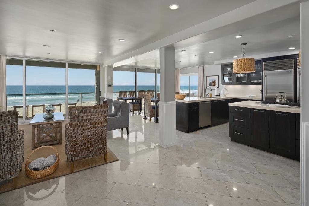 Rare opportunity to own a Premier Penthouse Dream combining Panoramic Views of white water crashing surf + luxury top-floor ocean front living from this furnished “move in ready” 4BR+Den/ 5.5BA spacious Mission Beach condo. Cast your panoramic gaze all the way north toward La Jolla or South to Ocean Beach, while listening to crashing waves perched a top the sands of world famous Mission Beach. This expansive 2 Level floor plan encompasses a combined two penthouse units on 2nd/3rd floor boasting modern marble/stone flooring, Coastal Great Room w/ ocean views, chic stainless appliances & floor-to-ceiling Western Multi-Slide glass doors spilling out onto your abundance of private ocean front Decks. Dream LIFE! Don't miss this opportunity to enjoy ownership in Modern Coastal Bliss w/ Year Round White Water VIEWS in one of the best locations on Mission Beach overlooking pristine coastline & a close boardwalk stroll to shops, nightlife & aquatic entertainment. ENTRY LEVEL: High Ceilings & spacious floor plan from your white water living, kitchen & dining room await you w/ a pristine stone countered kitchen w/ Dual SubZero Fridges, Bosch/Viking aplcs, Center Island 5 Burner cooktop & wrap around built-in dining nook ALL overlooking crashing surf, white sands & sunsets. UPSTAIRS: Dual Ocean Front Main BR Suites w/ spa like bathrooms & exclusive penthouse ocean view decks line the westerly exposure Plus 3 additional guest rooms for large vacations, gatherings or rentals. OTHER: 1) Air Conditioning Mini-Splits in rooms 2) Custom sleek Bathrooms w/ stone flooring/vanities, Kohler sinks, TOTO toilets, Tankless Water Heaters 3) Custom wainscoting lined Entry 4)AV Speakers/Alarm System 5) 5th Room Optional BR has 4 Bunk Beds for Guests (no closet/no window) 6) 2 side-x-side Parking Spaces, Numerous skylights, Walk-in closets, Woven Pendant Lighting, Frosted Glass & Stainless Accents......a true legacy coastal property along the San Diego coast! Equipment: Dryer, Range/Oven, Washer Sewer: Sewer Connected Topography: LL Frontage: Ocean/Sand, Open Space