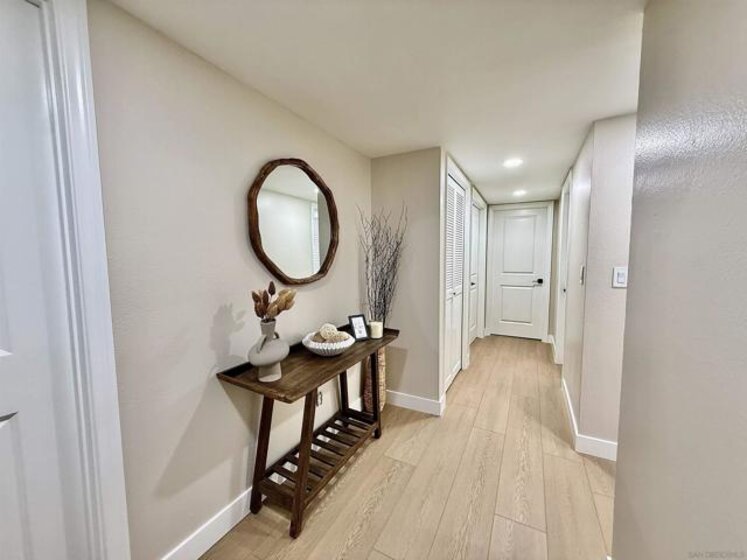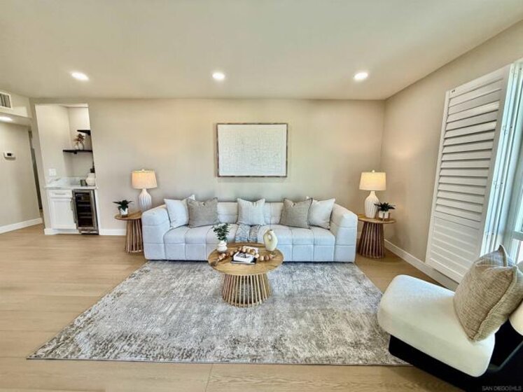 Experience luxury coastal living in this stunning top-floor, single-level corner condo in the prestigious La Playa neighborhood of Point Loma, offering breathtaking panoramic views of the San Diego Harbor, Downtown skyline, and Shelter Island from the balcony, living room, and both bedrooms. Featuring an elegant kitchen with granite counters and a walk-in pantry, a skylight dining area, and an expansive living room with a fireplace and built-in wet bar, this home blends comfort and sophistication seamlessly. Upgraded with newer windows, wood shutters, in-unit laundry, abundant storage, and AC, it also includes a secured one-car garage with private storage—all just a couple of blocks from the sand at Kellogg Beach and steps from yacht clubs, waterfront paths, and upscale dining. Experience luxury coastal living in this stunning top-floor, single-level corner condo in the prestigious La Playa neighborhood of Point Loma, offering breathtaking panoramic views of the San Diego Harbor, Downtown skyline, and Shelter Island from the balcony, living room, and both bedrooms. Featuring an elegant kitchen with granite counters and a walk-in pantry, a skylight dining area, and an expansive living room with a fireplace and built-in wet bar, this home blends comfort and sophistication seamlessly. Upgraded with newer windows, wood shutters, in-unit laundry, abundant storage, and AC, it also includes a secured one-car garage with private storage—all just a couple of blocks from the sand at Kellogg Beach and steps from yacht clubs, waterfront paths, and upscale dining.