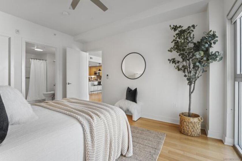 Welcome to the Egyptian, Hillcrest’s iconic concrete and steel condominium community, ideally positioned where Hillcrest, North Park, University Heights, and Balboa Park converge. Celebrated for its architectural integrity, solid construction, and exceptional walkability, this midrise offers true urban living with a refined residential feel, just moments from Hillcrest’s vibrant dining and nightlife and close enough for daily strolls into Balboa Park! Perched on the 4th floor, this spacious one-bedroom residence offers a bright, quiet, courtyard-facing retreat that feels worlds away from the energy outside. Thoughtfully updated in direct response to buyer feedback, the home now features a fully enclosed bedroom for enhanced privacy while maintaining a clean, modern aesthetic. Interior highlights include wood floors, granite countertops, stainless steel appliances, gas cooking, in-unit laundry, and secured, EV-ready garage parking. The Egyptian remains one of San Diego’s premier concrete and steel buildings, valued for its durability, timeless style, and livability. For buyers seeking quality construction and an unbeatable central location, this residence sets the standard. There simply isn’t a nicer, QUIETER one-bedroom condo available in Hillcrest. Before you buy, take the time to compare, AND you’ll quickly see the difference.