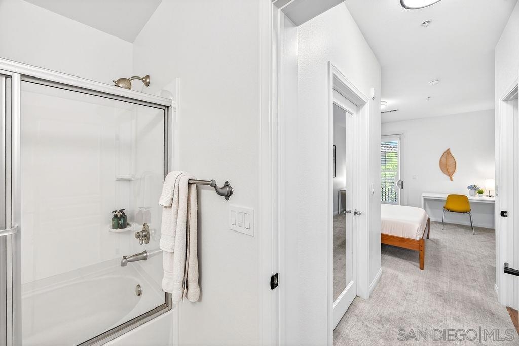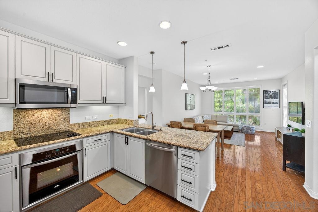 Welcome to 3887 Pell Place #314 - a coastal, turnkey remodeled 2 bed, 2 bath home in the heart of Carmel Valley’s highly sought-after walking district w/ LOW $407 HOA. 1 mile from Del Mar Beach. Light, bright, and exceptionally private, this beautifully updated residence features dual primary suites and is ideally positioned in one of the best locations within the Pell Place community, surrounded by mature trees with peaceful sunrise views and refreshing coastal breezes. This move in ready home offers stainless steel appliances, central AC and heat, full sized stacked laundry units, freshly painted interiors and cabinetry, generous storage, and a functional open layout that flows seamlessly to two private patios, including a patio off the primary suite perfect for indoor-outdoor living. Located just one block from Del Mar Highlands, you’re steps from some of North County’s best shopping, dining, and entertainment, including Sky Deck and Sky Bar. The community is rich with amenities, featuring a large putting green, and access to the nearby recreation center with a resort-style pool, waterslides, and park. Just a few blocks away, enjoy the Del Mar Pump Track skate park and everything that makes this area one of San Diego’s most vibrant coastal communities. Perfectly situated within walking distance to everything you need and adjacent to top rated 9 and 10 schools, this home offers the ideal blend of lifestyle, location, and comfort. We invite you to experience 3887 Pell Place #314.