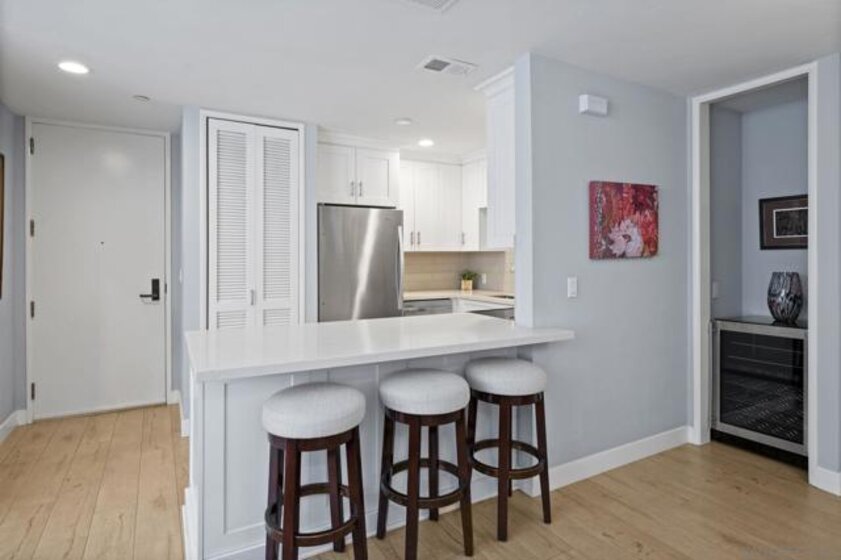 Welcome to 4082 Albatross St, a fully renovated condo ideally located between Hillcrest and Mission Hills. This move-in-ready home offers 968 square feet of thoughtfully designed living space, featuring two spacious bedrooms and two modern bathrooms. The interior has been completely updated to suit today’s lifestyle. The renovated kitchen showcases sleek finishes, updated countertops, and contemporary cabinetry, creating a functional and stylish space for cooking and entertaining. Both bathrooms have been redesigned with high-end materials and comfort in mind, offering a calm and inviting retreat. New flooring ( Luxury Vinlyl) throughout the condo ties the space together with a fresh, cohesive feel. An in-unit washer and dryer add everyday convenience, while central air conditioning ensures year-round comfort. Parking is secure and easy with two deeded, gated parking spaces included. A third street parking space is available through a city permit for a nominal fee.The home may be purchased fully furnished, providing a true turnkey opportunity. Ideal for low-maintenance living, or an investment property, this condo delivers comfort, style, and functionality, all with a low HOA fee. One pet max 35 Lbs allowed. Located in vibrant central San Diego, the property offers convenient access to dining, shopping, and nearby attractions. Don’t miss the opportunity to own this completely renovated home in a quiet residential street in one of San Diego’s most desirable neighborhoods.