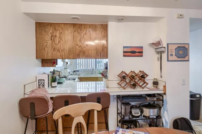 This charming residence in the vibrant University Town Center (UTC)/La Jolla area offers comfortable, convenient living with thoughtful features throughout and unbeatable Vibrant location! Step inside to discover beautiful plank flooring, cozy living room features a warm fireplace, creating an inviting focal point for relaxation. Adjacent, a stylish loveseat with built-in storage sits amid lush, serene surroundings. Custom Levolor blinds allow soft morning light to gently fill the room while offering easy light control. The solid, rich kitchen cabinets provide ample storage and a timeless appeal. Enjoy the convenience of a private washer and dryer, plus your own attached garage just steps from the kitchen door! Location is unbeatable: situated in the heart of UTC/La Jolla, you're moments from the expansive Nobel Athletic Fields and Recreation Center featuring lighted softball fields and afternoon soccer, multipurpose gym- badminton/volleyball, children's play areas, classes, and more for active lifestyles and family fun. World-class shopping and dining are right nearby, including Westfield UTC with Nordstrom, Trader Joe's, Whole Foods, AMC Theatres, and additional favorites. Quick access to La Jolla Colony Vons, UCSD, VA and Scripps hospitals, and endless amenities makes daily errands effortless. Don't miss this prime opportunity to live in one of San Diego's most desirable walkable neighborhoods!
