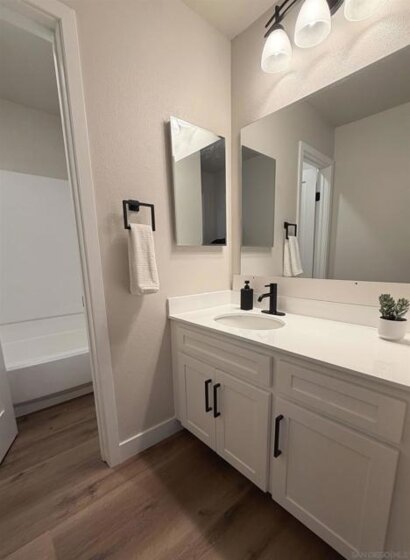 Experience coastal living at its finest in this fully renovated, end unit at Mission Bay Condos—This 2-bedroom, 2-bathroom, 1,102 sq ft single-level home is filled with natural light and designed with a modern coastal aesthetic. The open-concept layout features new light oak luxury vinyl plank flooring, fresh interior paint, and a spacious living area with built-in cabinetry. The beautifully remodeled kitchen showcases granite countertops and new ss appliances. Both bathrooms have been tastefully updated. The primary suite offers a walk-in closet, ensuite bath, and private balcony. Additional highlights include in-unit laundry with side-by-side capacity, dual-pane windows and slider, generous storage, and only one shared wall for added privacy. This unit includes two assigned parking spaces (one covered with storage, one uncovered) conveniently located near the elevator. The gated, pet-friendly community offers resort-style amenities including a pool, spa, BBQ area, and well-maintained grounds. HOA covers water, trash, termite, and exterior maintenance. Ideally located in the vibrant Bay Park neighborhood, you’re just minutes from beaches, trolley access, USD, freeways, and an array of popular restaurants, coffee shops, and breweries. Whether you're a first-time buyer or seeking a low-maintenance investment, this move-in-ready home is a rare opportunity in one of San Diego’s most desirable communities.
