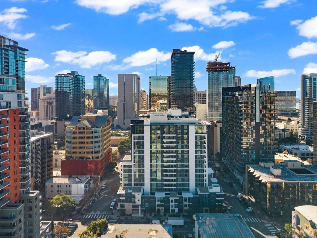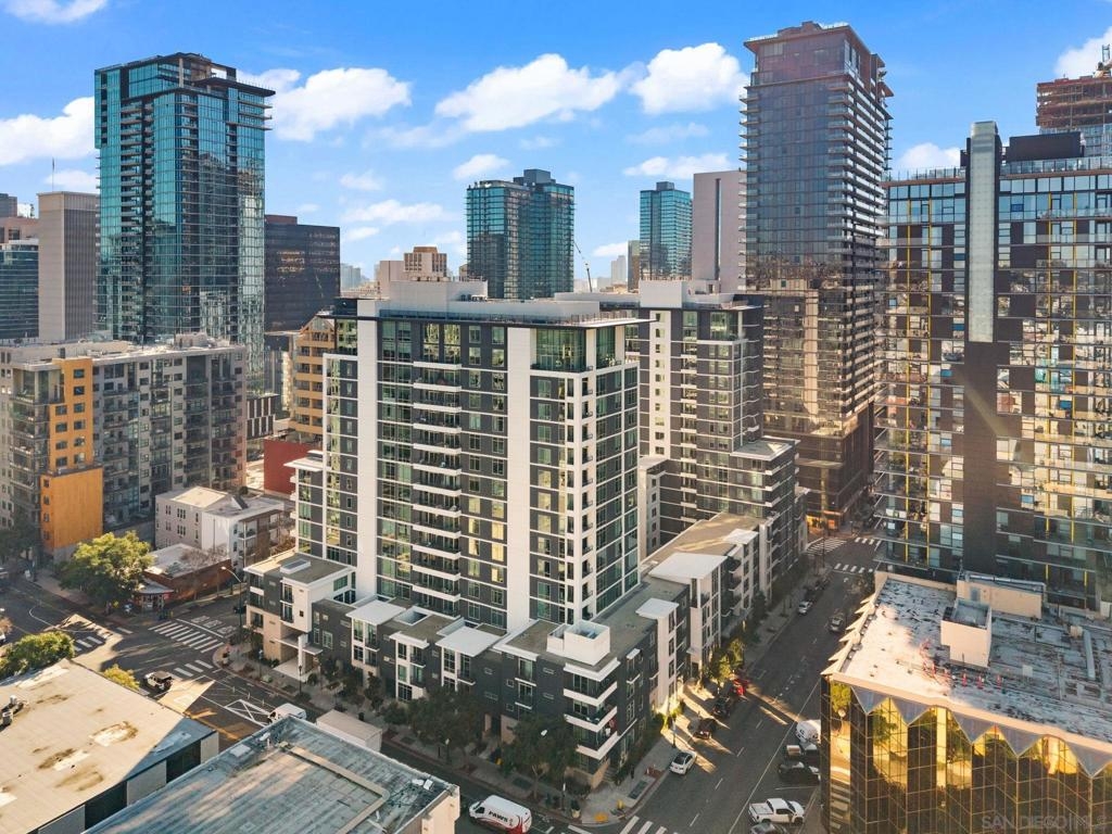 Fully Renovated Little Italy Condo with Designer Finishes, Strong Rental Potential & Resort-Style Amenities. Live in the heart of vibrant Little Italy steps to the famous Farmers Market, transit, 100+ restaurants and more in this completely renovated, light-filled condo that blends modern design with effortless urban living. Every detail has been thoughtfully upgraded—from the sleek quartz kitchen with new stainless steel appliances to the warm, durable luxury vinyl plank flooring throughout. Floor to ceiling windows let in the San Diego sunshine. Charming Juliet balcony invites in fresh coastal air just blocks from the bay. The oversized bedroom is a true retreat, featuring a custom Home Decorators Collection closet system for elevated storage and style. The spa-inspired bathroom offers a walk-in shower, modern vanity, and anti-fog LED mirror—creating a clean, sophisticated feel. Enjoy everyday convenience with in-unit Asko laundry and move-in-ready condition—no projects, no upgrades needed. 1 parking space included, additional parking available to rent. HOA has pool, hot tub, Amazon lockers, fire pits, Cabanas, grills, fitness center, 24/7 on site staff, and so much more! VA & FHA approved. Condo has cash flow investment potential & is ideal for bonus depreciation.