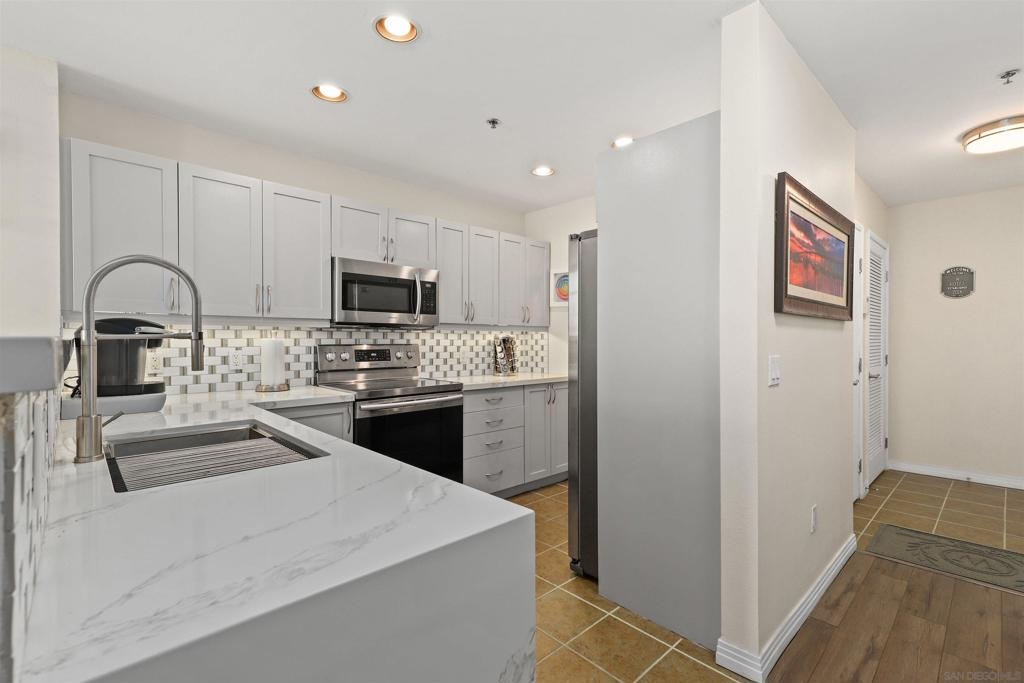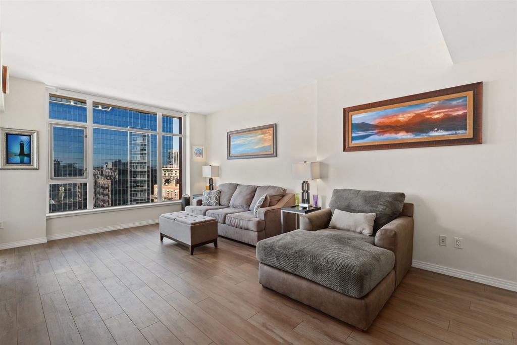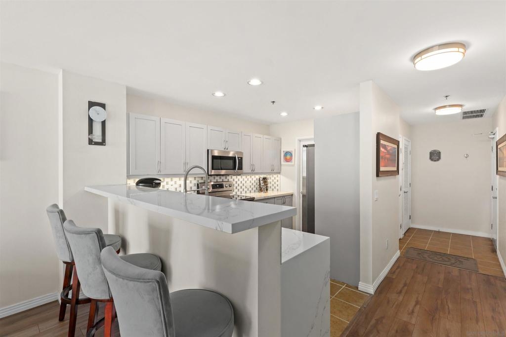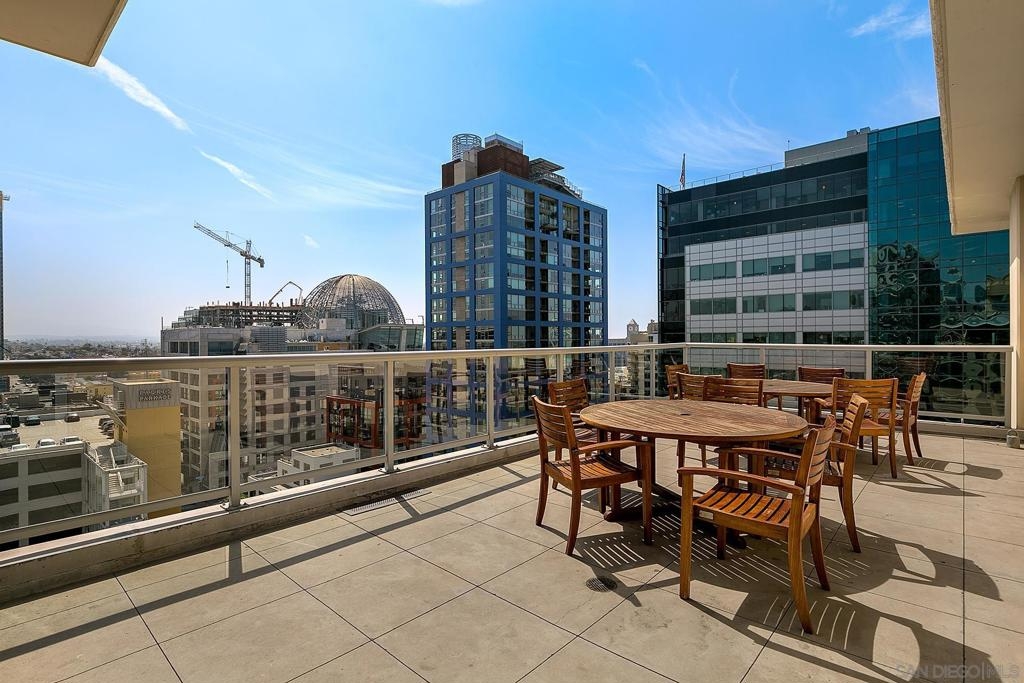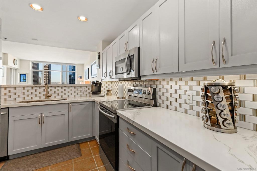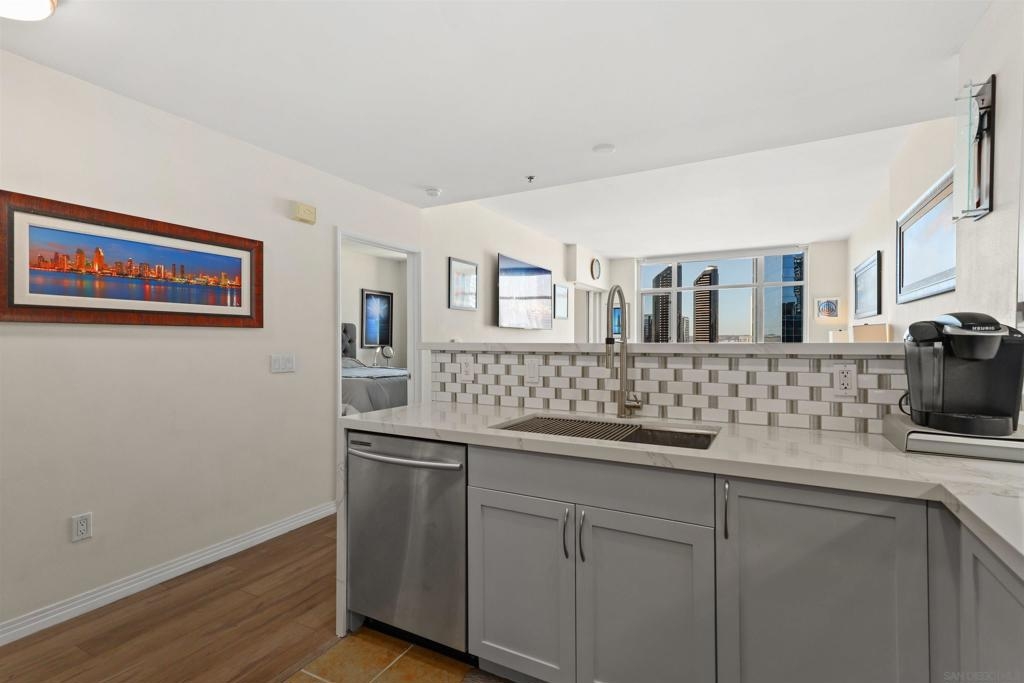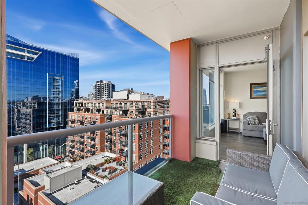 With a clear bird’s eye view into Petco Park, you might never want to leave home—enjoy FREE PADRES’ HOME GAMES, FREE CONCERTS, and FREE EVENTS right from your private 12th-floor balcony and living room. Take in stunning sunsets and panoramic sights of the city and Bay while you relax in comfort. Diamond Terrace features resort-style amenities and a prime Downtown location, so you can easily walk to everything that makes San Diego amazing—no driving necessary! Take in the energy of the city from the premium, covered community entertainment deck, or retreat indoors to peaceful serenity thanks to thick, noise-resistant floor-to-ceiling windows that fill your home with natural light. The open, flowing layout is beautifully finished with sleek laminate flooring throughout. The upgraded kitchen features quartz countertops, shaker cabinetry, and a bonus pantry for extra storage. Blackout shades in the bedroom provide restful sleep, while the spa-inspired bathroom includes a luxurious step-in shower with custom tile detailing. Enjoy the convenience of an in-unit laundry closet and an assigned parking space that makes parking effortless. Situated in the vibrant East Village, you're just steps from bars, restaurants, shops, entertainment, parks, dog areas, and the waterfront. Diamond Terrace boasts a stylish lobby, top-floor community room, fitness center, and an outdoor lounge deck with BBQs—perfect for catching events at Petco Park. With quick access to the 5, 163, and 94 freeways, this home is a true gem!