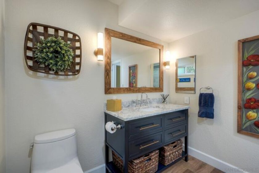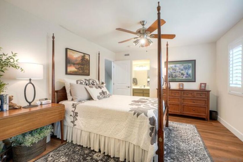 Fully Renovated Townhome in the Highly Desirable Kensington Park Villas Welcome to Kensington Park Villas, a serene, resort-style community tucked away in the heart of San Diego. This beautifully renovated 3-bedroom, 3-bathroom home spans approximately 1,875 sq. ft. and is one of the largest floor plans in the community. Thoughtfully upgraded from top to bottom, the home features a brand-new A/C system (installed in 2023), updated electrical throughout, a new water heater (2024), modernized bathrooms, and custom Elfa-built closets with interchangeable organizers. Perfectly positioned with no neighbors directly behind and scenic views of lush trees and a tranquil pond, this home combines privacy, style, and comfort in one stunning package. Step inside to a bright, open living space featuring tall, vaulted ceilings, modern finishes, and a newer fireplace that creates an inviting atmosphere. The gourmet kitchen is designed for both everyday living and entertaining, showcasing white and navy cabinetry, quartz countertops, sleek stainless-steel appliances, an induction cooktop, dual ovens, a warming drawer, and ample cabinet space with soft-closing features—including storage under the island. This home offers dual primary suites, one conveniently located on the lower level and one on the upper level. The downstairs primary suite features real bamboo wood floors, direct access to the private patio, and a luxurious ensuite bathroom with dual vanity sinks and a large walk-in shower. See Supplement => Upstairs, you’ll find the second primary suite, which was refreshed this year, along with an additional guest bedroom and full bath. Additional highlights include luxury vinyl plank flooring throughout, a balcony with serene views, and an attached 2-car garage with epoxy floors and built-in storage. Kensington Park Villas is truly a hidden oasis, offering a resort-like atmosphere with two swimming pools and spas, cascading waterfalls and ponds, beautiful mature landscaping, and pedestrian gates with direct access to the Village of Kensington. The gated community also features a clubhouse ideal for gatherings and events. Don’t miss this incredible opportunity to own a move-in ready, fully renovated home in one of San Diego’s most unique and desirable communities