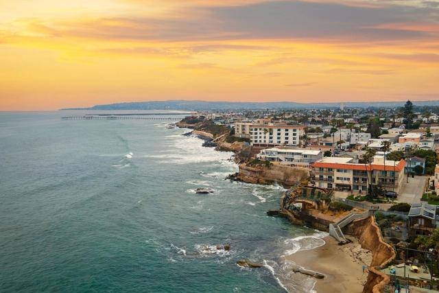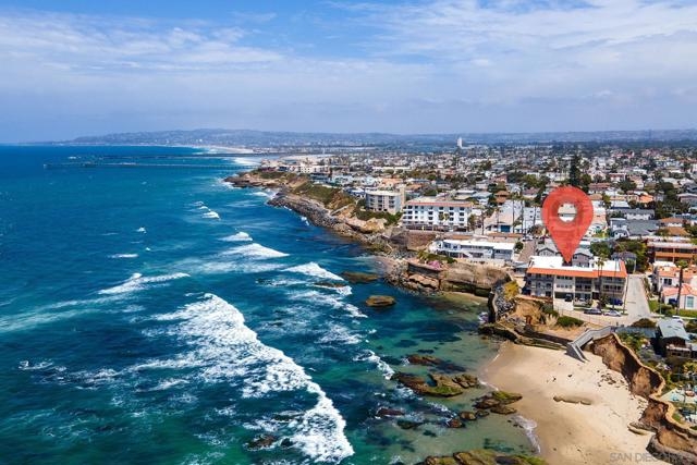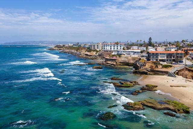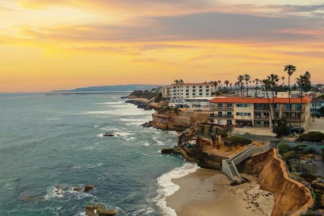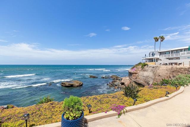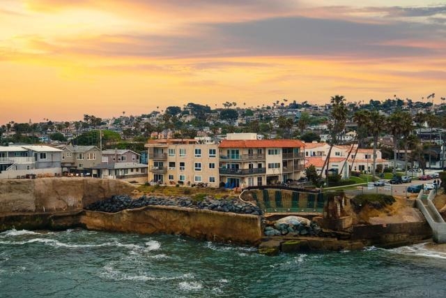 Oceanfront condo for under $1,000,000 in 92107! Experience the serenity of waterfront living in this bright, spacious, Boho-style corner unit! 1 bedroom, 1 bathroom located in an oceanfront condominium. The stunning chef’s kitchen is a true showstopper, featuring a custom live edge wooden island that’s perfect for entertaining, along with the convenience of in-unit laundry. Enjoy a breezy open floor plan that flows seamlessly to your private balconies with water views—ideal for morning coffee or sunset relaxation. The spacious bedroom and tastefully updated bath offer comfort and style, while dedicated parking enhances everyday living. The complex also offers a refreshing pool. Just steps from the stairway to the sandy beach! Great walk score gives you easy access to shops, the farmers market, dining, and so much more. This rare coastal gem offers the perfect blend of charm, comfort, and convenience in one of San Diego’s most beloved beach communities. Unit includes one off-street parking space.