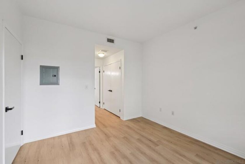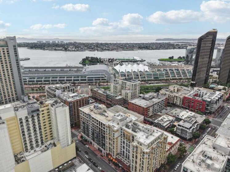 Light and bright, this spacious one-bedroom condo at Trellis on 5th offers the ultimate downtown lifestyle. The sleek, modern interior features a neutral color palette, open floor plan, and large picture windows that fill the space with natural light. The updated kitchen boasts quartz countertops, a glass tile backsplash, breakfast bar seating, and stainless steel appliances—perfect for entertaining. The bedroom accommodates a king-size bed and includes ample closet space, and a large updated bathroom with dual access. Additional highlights include in-unit laundry and one secure parking space. Residents enjoy resort-style amenities such as a 24-hour fitness center, BBQ courtyard, parcel lockers, and nightly on-site security. Ideally located in the East Village/Gaslamp district, you’ll have easy access to restaurants, cafés, nightlife, Petco Park, the Rady Shell, and scenic harbor walks—perfect for those seeking a vibrant urban lifestyle or a stylish pied-à-terre.
