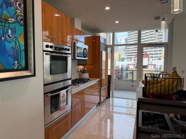 Luxury living at The Pinnacle. Bright NW corner 2-bed, 2-bath home with 10-ft floor-to-ceiling windows, motorized blinds, polished marble floors, and two private terraces offering sweeping 180-degree downtown views. Chef’s kitchen with new quartz counters, Italian Snaidero cabinetry, high end appliances, Sub-Zero fridge, and wine cooler. Features dual-zone HVAC, in-unit laundry, two parking spaces, and storage. Resort-style amenities include a 95' lap pool, sauna and steam room, clubhouse, fitness center, concierge, and guest suite. Ideal Marina District location near San Diego Bay, Seaport Village, the Gaslamp Quarter, and Ralphs. This renovated model features a chef’s kitchen with custom cabinetry, quartz countertops, and stainless steel appliances including a Sub-Zero refrigerator and wine cooler. Polished marble floors throughout, hardwood flooring in the bedrooms, and bathrooms finished with high-end materials and fixtures. 2 Bed/2Bath 1,297sf + Balconies 226sf = 1,523sf total.