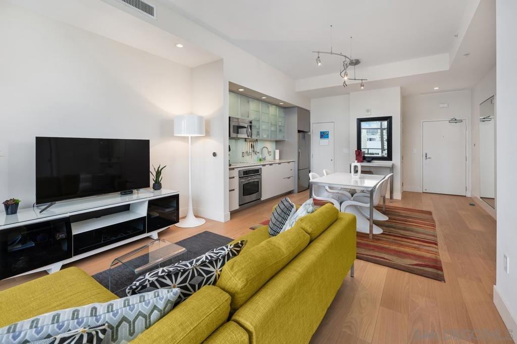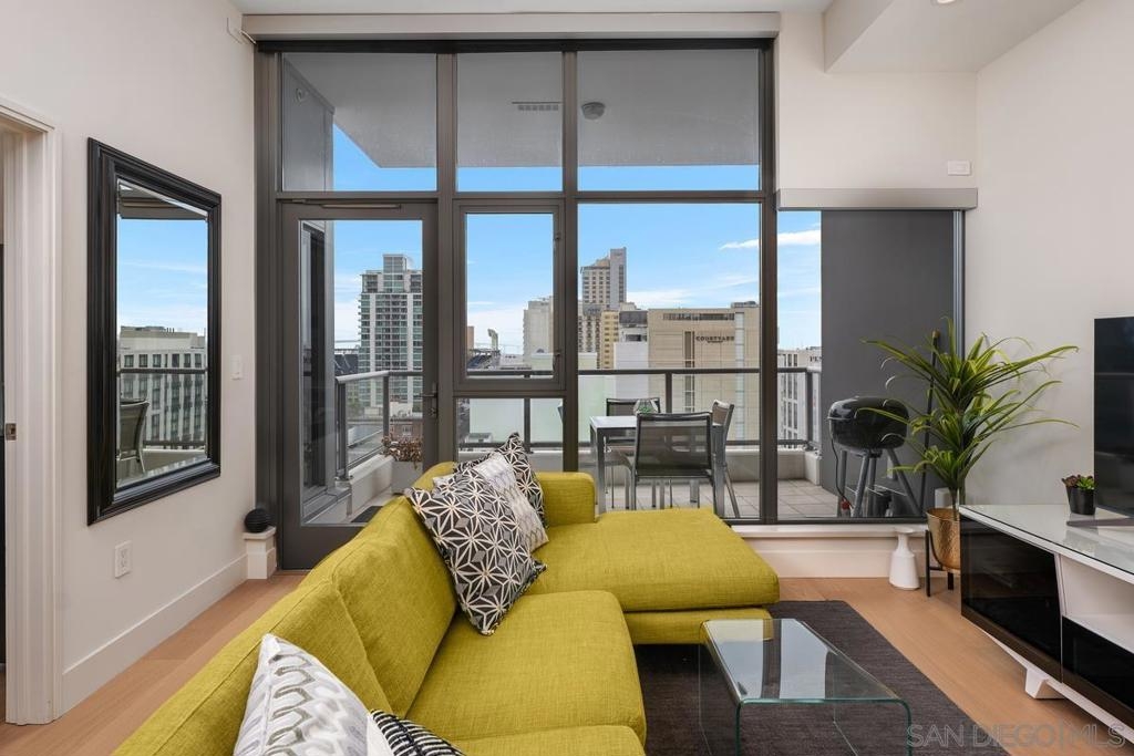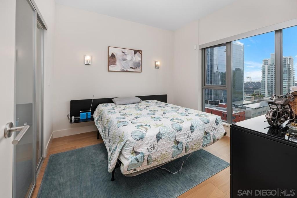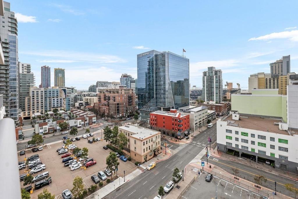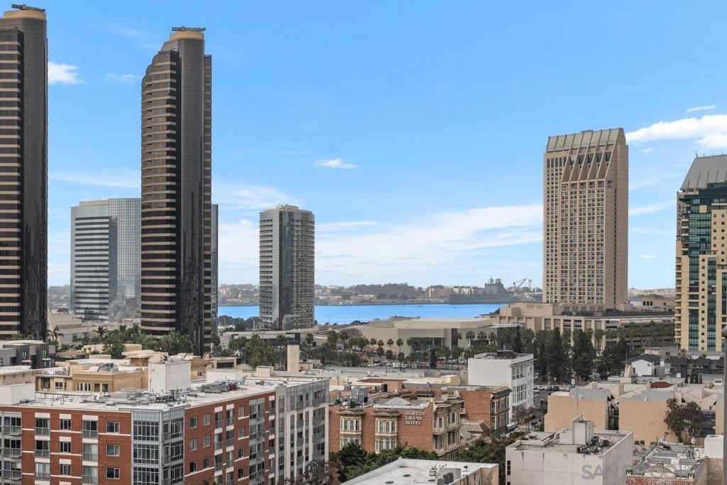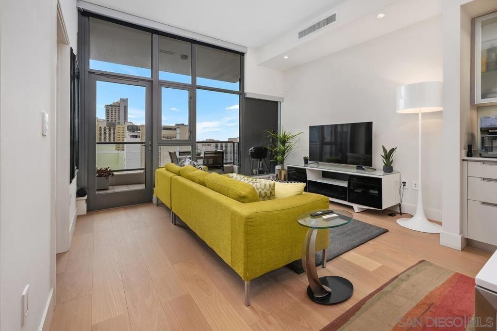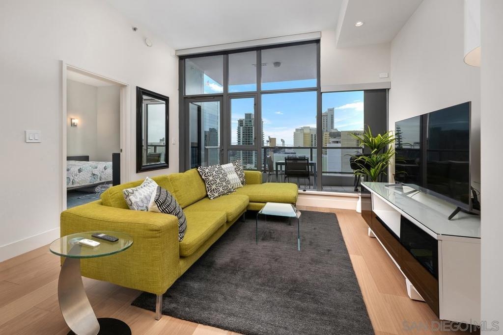 What an incredible opportunity to own a sunny south facing view unit on the 11th floor!!! Soak up the sun and amazing views to Petco Park, Coronado Bridge, and San Diego Bay from your spacious 13ftx7.5ft private balcony on the 11th floor! This meticulously maintained & upgraded home will blow you away how new & fresh everything looks. Sold fully furnished! The open floorplan and floor to ceiling windows throughout this home make this home feel so spacious and dramatic. The modern kitchen with stone counters and SS appliances has all the luxury features you'd want. There's beautiful wide plank hardwood floors make the space light & modern yet warm. Automatic shades on all windows makes it a breeze diffuse the light if needed. The washer, dryer, refrigerator, and all appliances convey with the sale. The HOA amenities include a pool, spa, gym, indoor community / social area, gorgeous lobby, and first class onsite management including a front desk attendant. In addition to the assigned parking space, this property also features a private storage locker. Welcome home!