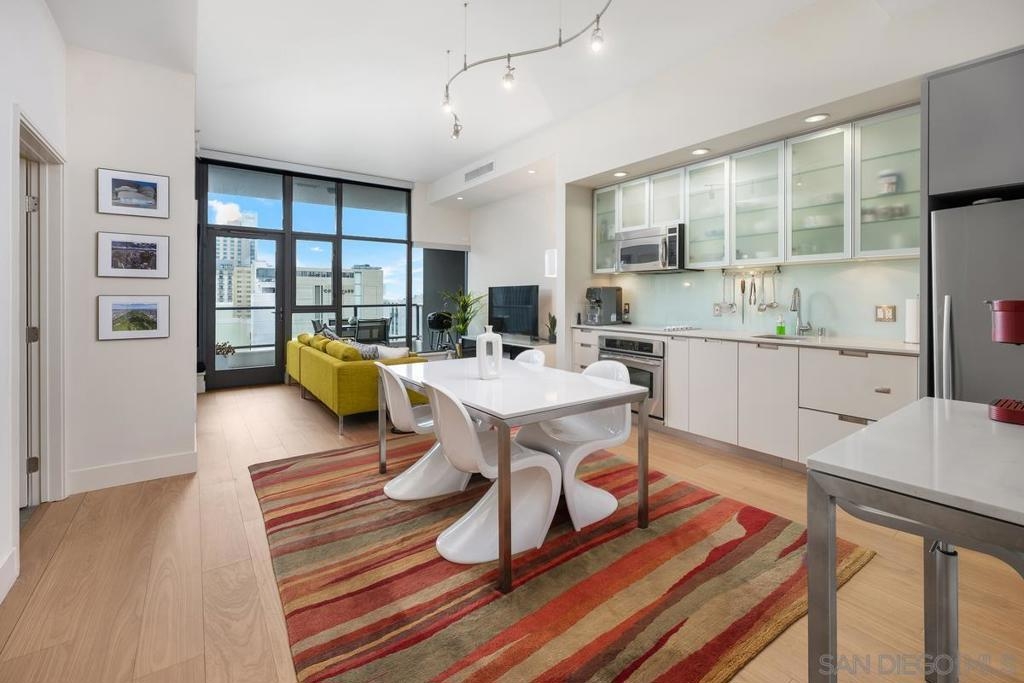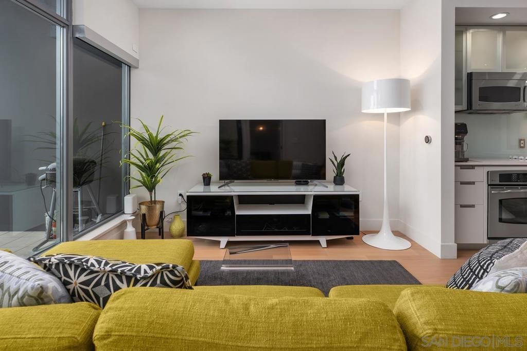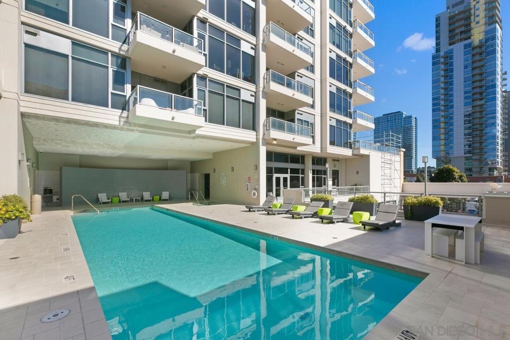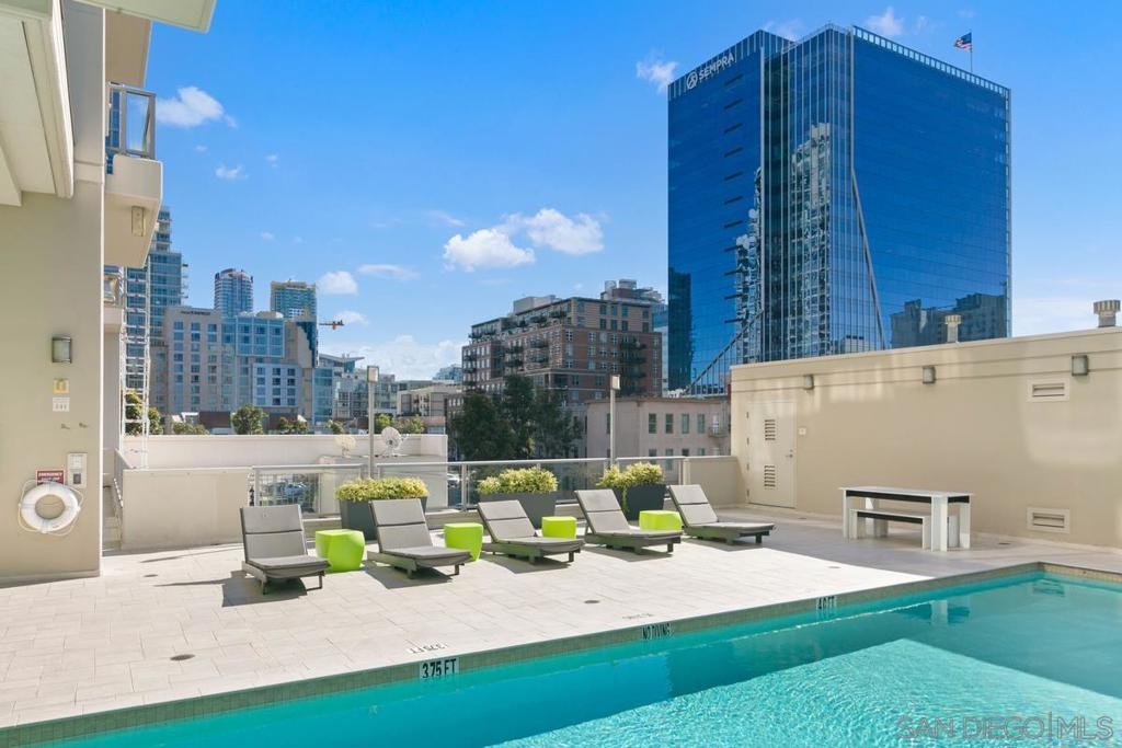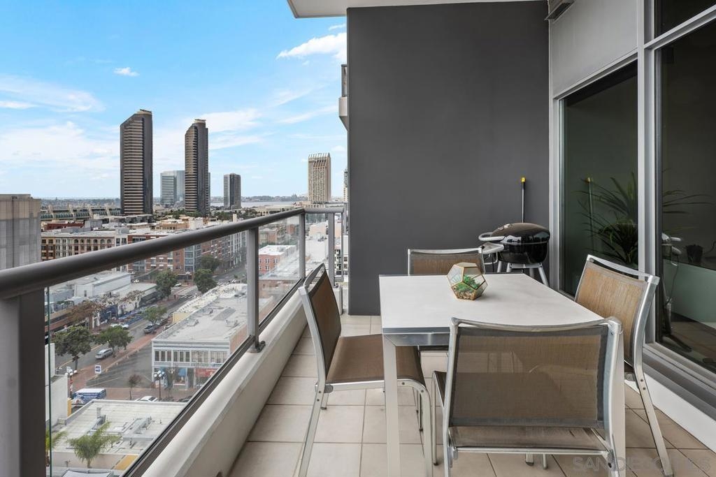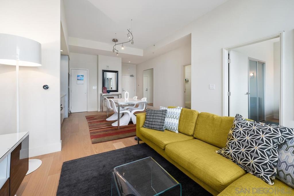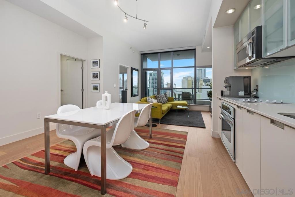 What an incredible opportunity to own a sunny south facing view unit on the 11th floor!!! Soak up the sun and amazing views to Petco Park, Coronado Bridge, and San Diego Bay from your spacious 13ftx7.5ft private balcony on the 11th floor! This meticulously maintained & upgraded home will blow you away how new & fresh everything looks. Sold fully furnished! The open floorplan and floor to ceiling windows throughout this home make this home feel so spacious and dramatic. The modern kitchen with stone counters and SS appliances has all the luxury features you'd want. There's beautiful wide plank hardwood floors make the space light & modern yet warm. Automatic shades on all windows makes it a breeze diffuse the light if needed. The washer, dryer, refrigerator, and all appliances convey with the sale. The HOA amenities include a pool, spa, gym, indoor community / social area, gorgeous lobby, and first class onsite management including a front desk attendant. In addition to the assigned parking space, this property also features a private storage locker. Welcome home!