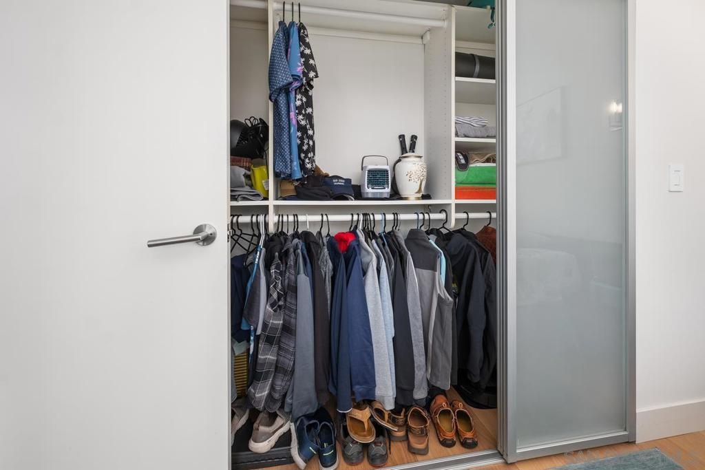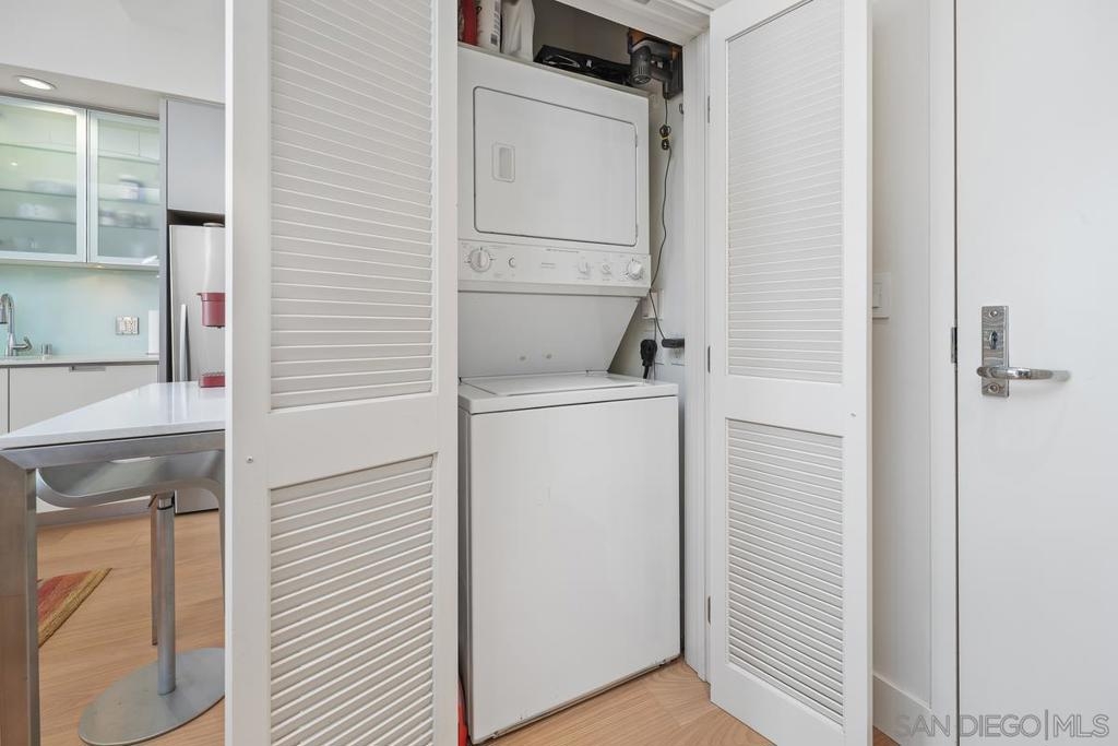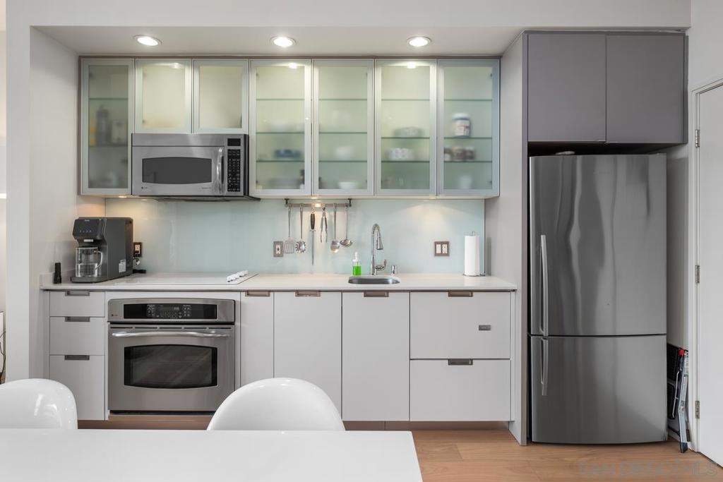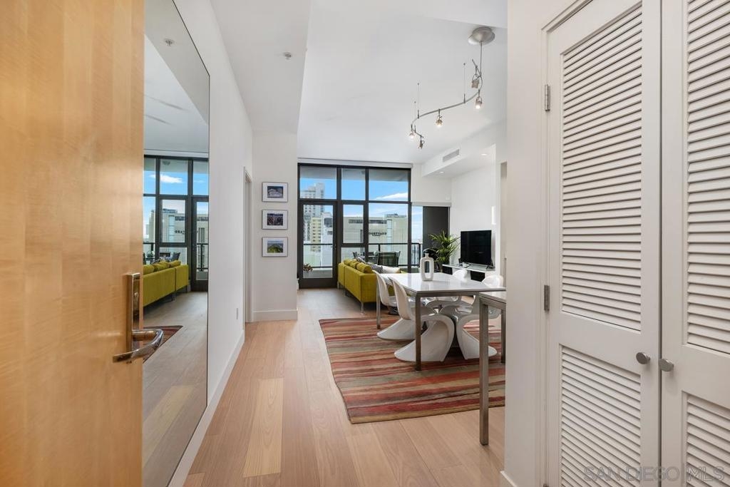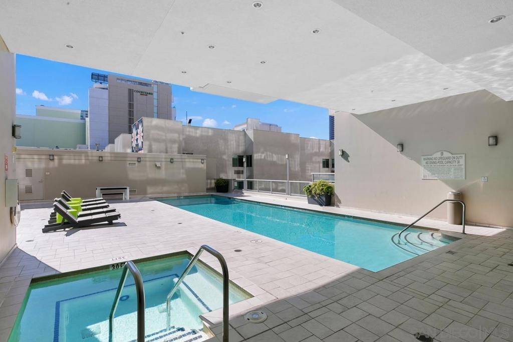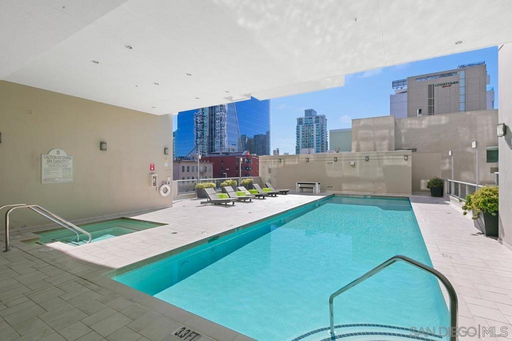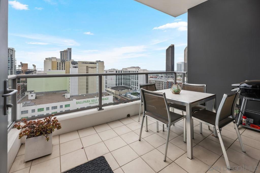 What an incredible opportunity to own a sunny south facing view unit on the 11th floor!!! Soak up the sun and amazing views to Petco Park, Coronado Bridge, and San Diego Bay from your spacious 13ftx7.5ft private balcony on the 11th floor! This meticulously maintained & upgraded home will blow you away how new & fresh everything looks. Sold fully furnished! The open floorplan and floor to ceiling windows throughout this home make this home feel so spacious and dramatic. The modern kitchen with stone counters and SS appliances has all the luxury features you'd want. There's beautiful wide plank hardwood floors make the space light & modern yet warm. Automatic shades on all windows makes it a breeze diffuse the light if needed. The washer, dryer, refrigerator, and all appliances convey with the sale. The HOA amenities include a pool, spa, gym, indoor community / social area, gorgeous lobby, and first class onsite management including a front desk attendant. In addition to the assigned parking space, this property also features a private storage locker. Welcome home!