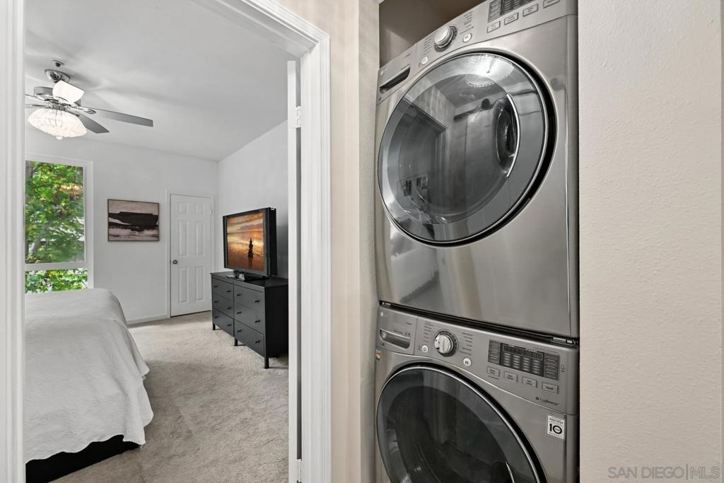 Beautifully updated throughout, this light-filled 2-bedroom, 2-bath home offers an open floor plan, fresh interior paint, and tranquil, tree-lined views. The stylish kitchen features granite countertops, stainless steel appliances, and breakfast bar seating—perfect for everyday living or entertaining. Both the windows and the sliding glass door have been replaced, enhancing energy efficiency, comfort, and natural light. The ideal split-bedroom layout includes two generously sized bedroom suites. The spacious primary suite offers private balcony access and a stunning, spa-inspired bathroom with dual sinks, ample closet space, custom tilework, gold hardware, and a luxurious jetted tub. The second suite is equally roomy, offering comfort and flexibility for guests, family, or a home office. A bright living room with 9-foot ceilings and a cozy fireplace sits at the heart of the home, with seamless flow to the private balcony—your personal spot to unwind. Additional conveniences include in-unit laundry and abundant storage. Parking is effortless with two tandem garage spaces thoughtfully configured with no wall on one side, allowing both vehicles to move independently. Residents enjoy outstanding resort-style amenities including two pools, tennis courts, a gym, and a sauna. Ideally located close to shopping, beaches, and downtown, this home offers the perfect blend of comfort, convenience, and the best of Southern California living.