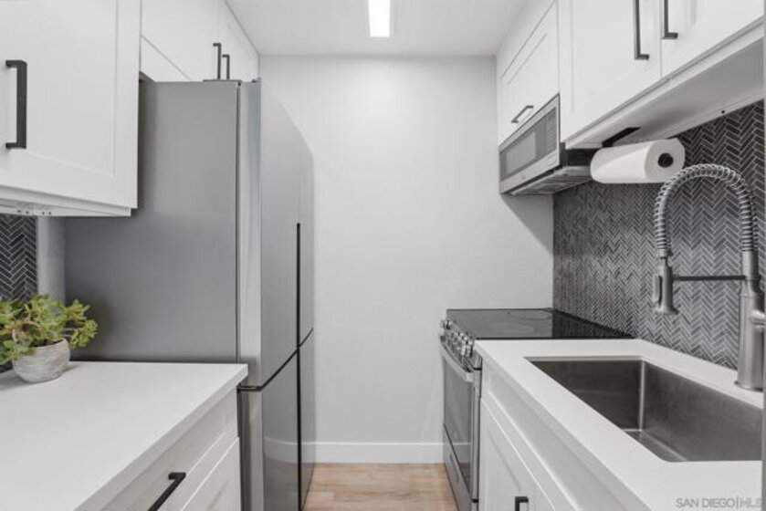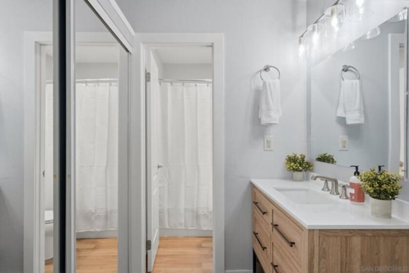 Impeccably remodeled and completely turnkey, this studio residence at 6333 Mount Ada Rd #159 offers a rare opportunity for both investors and owner-users seeking flexibility and long-term upside. The thoughtfully designed layout provides the option to easily convert into a true one-bedroom by adding a privacy wall, maximizing both functionality and rental potential. The interior has been fully upgraded with modern vinyl plank flooring, custom paint, and a beautifully redesigned kitchen with soft-close cabinetry, quartz countertops, a herringbone backsplash, industrial-grade sink, and high-end appliances. Also, a new vanity, updated lighting, fixtures, and hardware, creating a clean, contemporary finish throughout. Located within the highly desirable Blossom Walk community, residents enjoy a quiet, fully gated environment with resort-style amenities including a pool, fitness center, and recreational areas. The complex has undergone recent upgrades, including an HOA adjustment that positions the community for improved long-term stability with fewer increases anticipated in the near future. From an investment standpoint, the property benefits from strong rental demand driven by its proximity to major employment & education hubs. Minutes from UCSD, Mesa College, beaches, and with easy freeway access, the location consistently attracts high-quality tenants. Walkability to shops & restaurants helps support premium rental rates and low vacancy. Prime coastal, Amenity Rich Location with rare combination of turnkey condition, flexible layout, and strong rental performance! Come See!